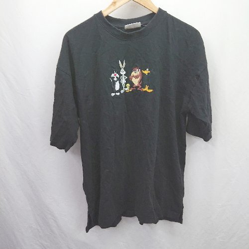 ◇ ⊂ ルーニー・テューンズ キャラクター 半袖 丸首Tシャツ サイズM ブラック系 メンズ E