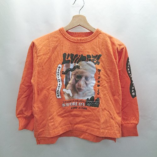 ◇ Θ◎●未使用● ORGABITS 旭山動物園 アニマルプリント キッズ 長袖 ロングTシャツ サイズ130 オレンジ 男の子 女の子 E