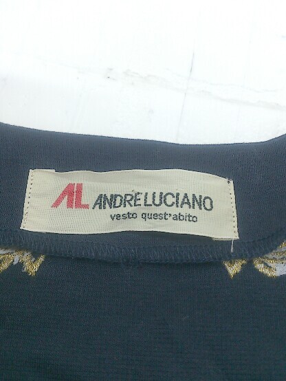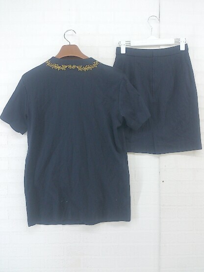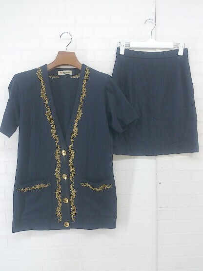 ◇ ANDRE LUCIANO 刺? 肩パット入り ミニ シングル ジャケット スカート セットアップ上下 ネイビー レディース P
