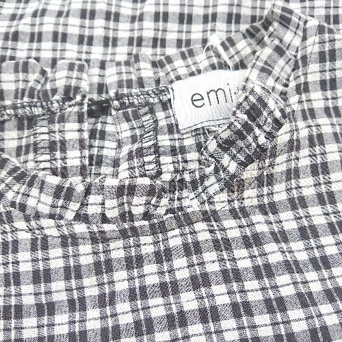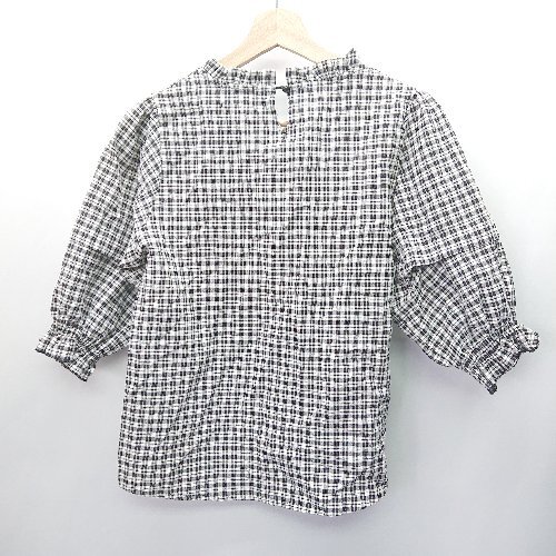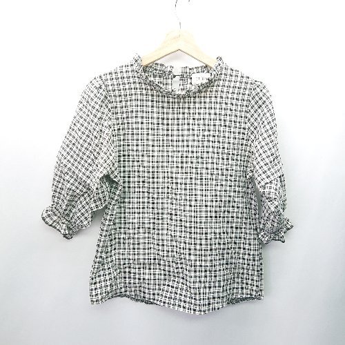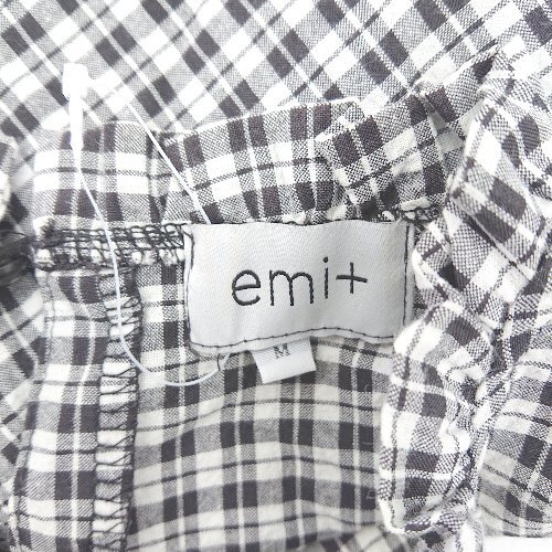 ◇ emi+ エミプラス ギンガムチェック 五分袖 ブラウス サイズM ブラック系 レディース E