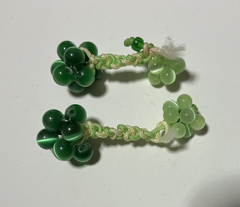 片方の紐がほどけてしまい、濃い緑色のビーズが1つ紛失してしまいました。