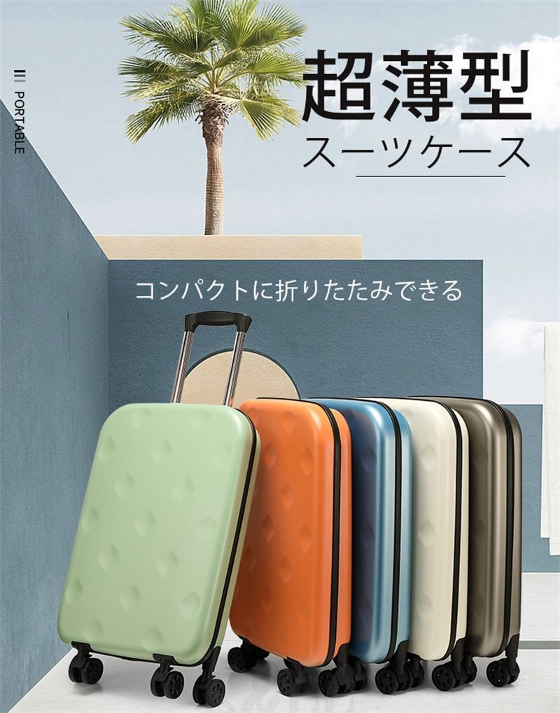 スーツケース 省スペース 折りたたみ キャリーケース S 高耐久 耐衝撃 軽量 拡張機能付き 機内持込 海外 旅行 出張 20インチ (ホワイト)
