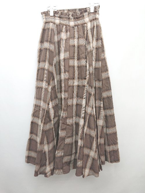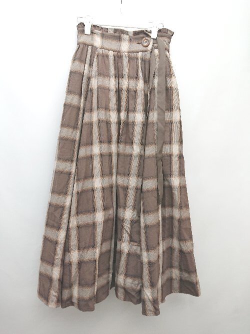 ◇ HERENCIA タータンチェック かわいい ロング フレア ラップ巻き スカート サイズ38 ブラウン ベージュ レディース P