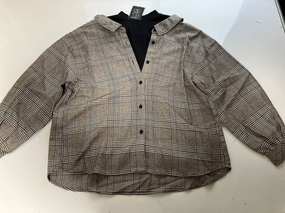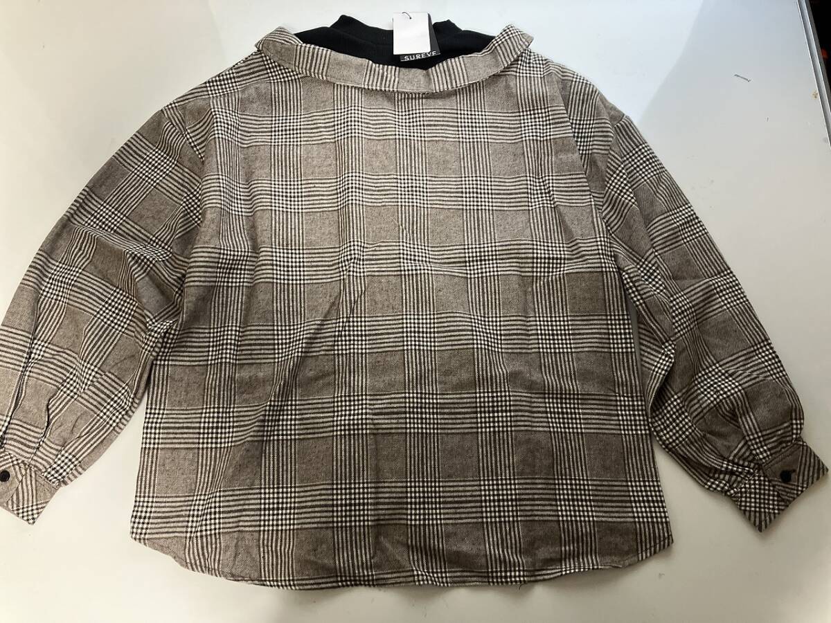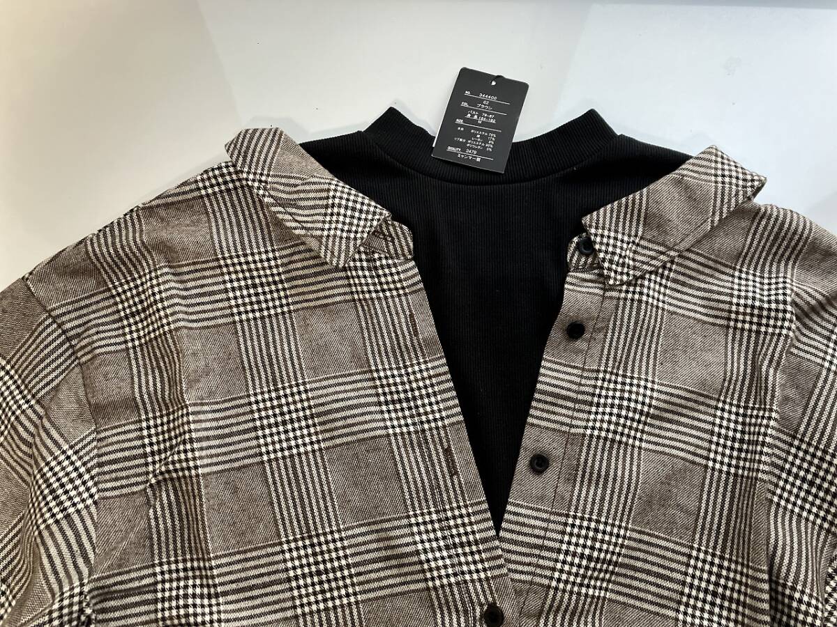 新品■Mサイズチェック2枚重ね風シャツ■ブラウン