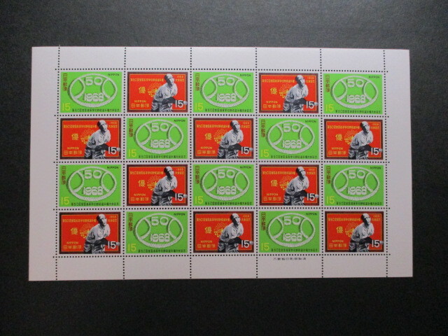 記念切手   68年・高校野球選手権・15円     1シート    美品