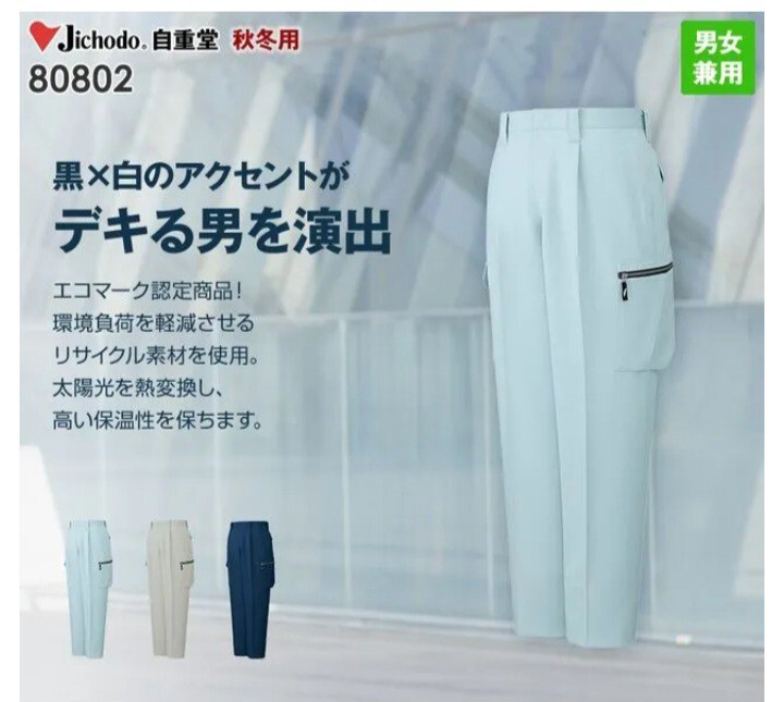 6081 自重堂 80802|秋冬 エコワンタックカーゴパンツ|ネービー|W88㎝|Field Message|新品未使用|ポリエステル100%|帯電防止|作業ズボン 紺