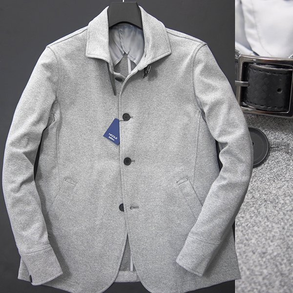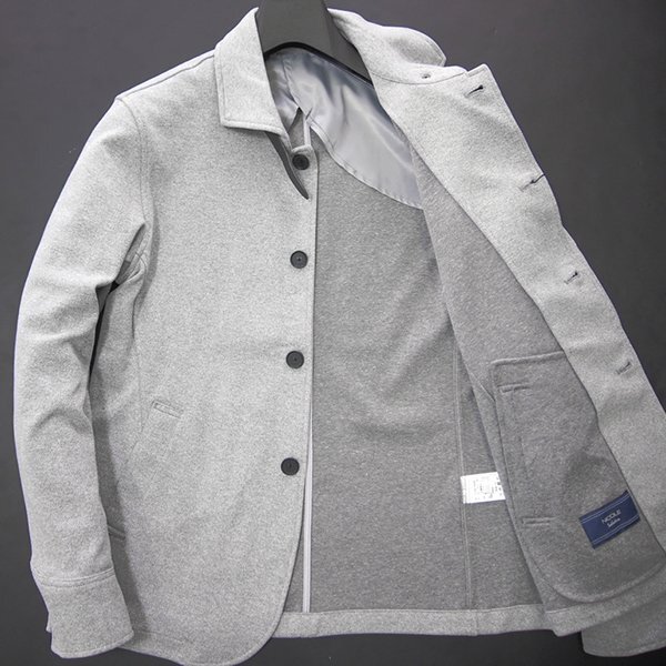 | 新品 未使用 紙タグあり 48サイズ(Lサイズ相当) ※商品に記載されたサイズ・寸法です※ 肩幅45cm 身幅53cm 袖丈62.5cm 着丈70cm 本体:ポリエステル53% 綿45% ポリウレタン2% 別布:ポリエステル100% 皮革部分:合成皮革 グレー |