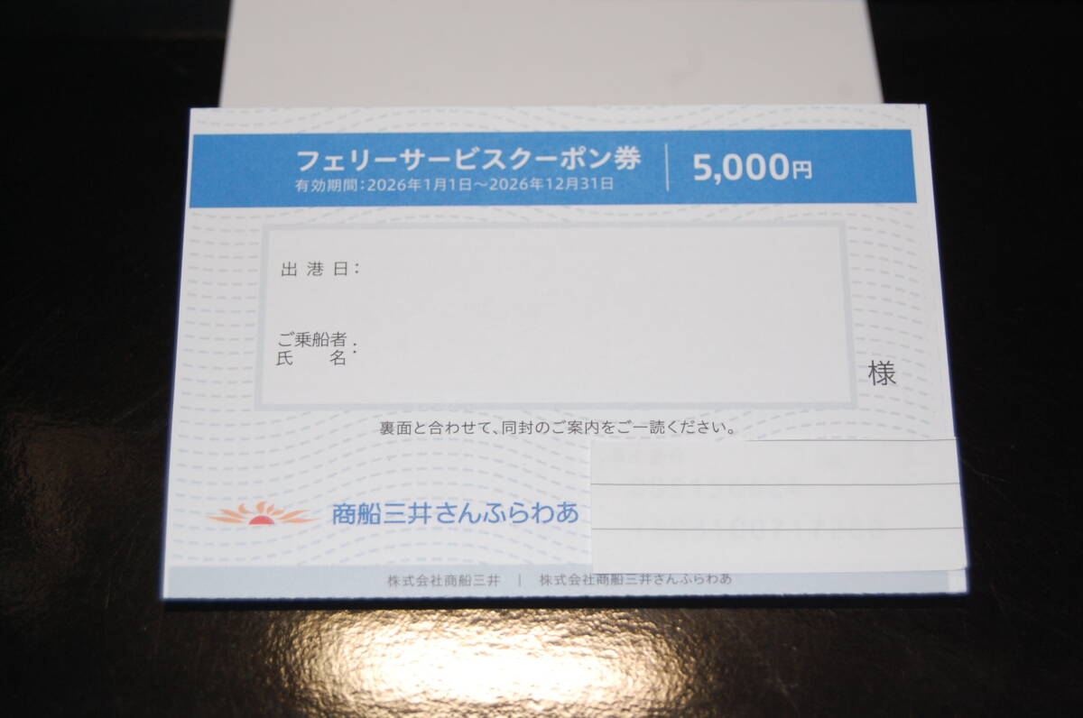 最新★商船三井 株主優待券★「さんふらわあ」フェリーサービスクーポン券5000円1枚★2026.12.31