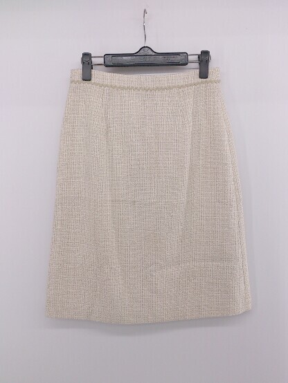◇ INDIVI インディヴィ ツイード 膝丈 タイト ナロー スカート サイズ38 ベージュ系 レディース E