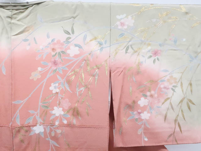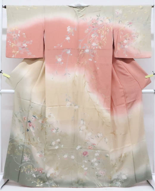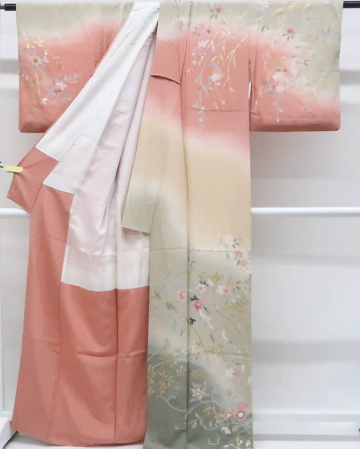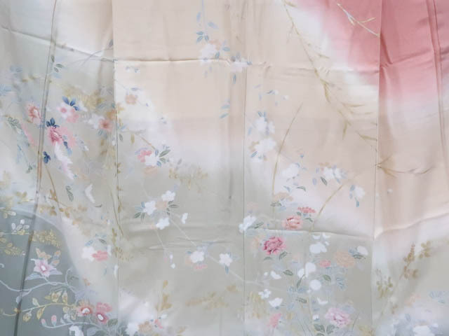 《京都一輝堂》訪問着 枝 花 暈し 正絹 着物 身丈約165cm 裄丈約65.5cm 25z11-6330