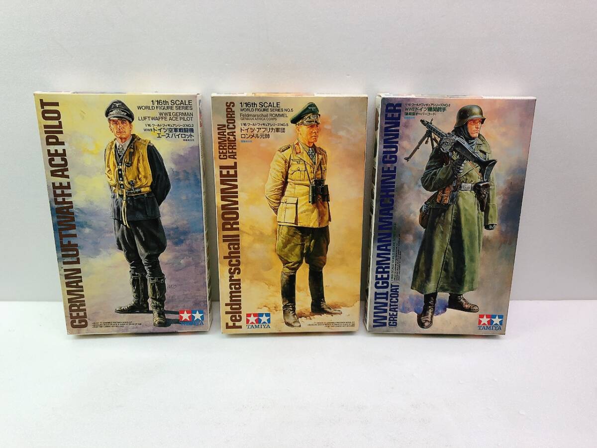 【閉店整理】未組立 タミヤ ドイツ空軍戦闘機エースパイロット/ドイツ・アフリカ軍団ロンメル元帥/ドイツ機関銃手 1/16 3点セット