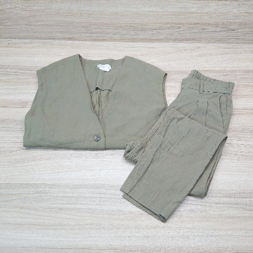 ◇ CIAOPANIC typy ウエストゴム フロントボタン ツータック 無地 セットアップ サイズONE オリーブ レディース E