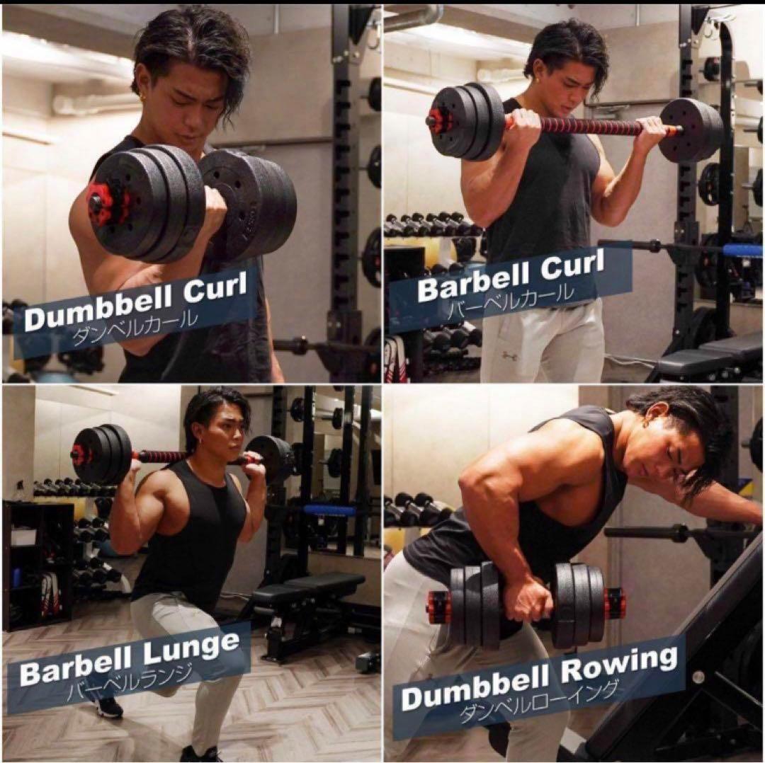 延長シャフトにダンベルシャフトを回して入れるだけでバーベルになります!様々トレーニングに挑戦が可能!