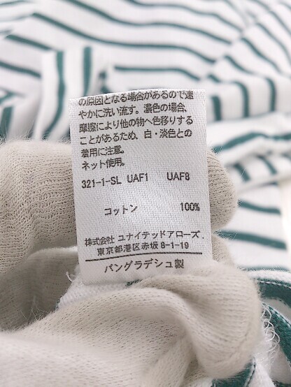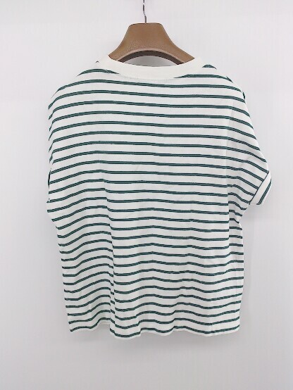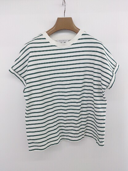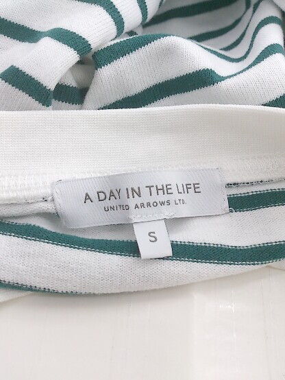 ◇ A day in the life UNITED ARROWS ボーダー カジュアル 半袖 カットソー サイズS ホワイト グリーン レディース E