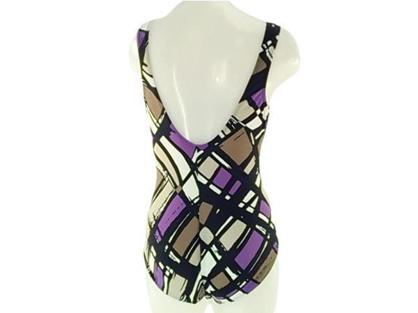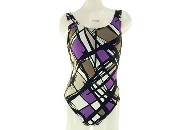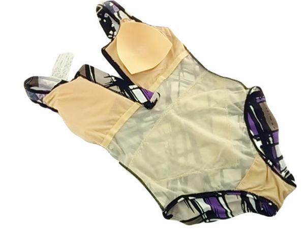 確実に細見え効果を約束してくれるななめの線のバイアス柄のとってもオシャレなワンピース補正水着 。