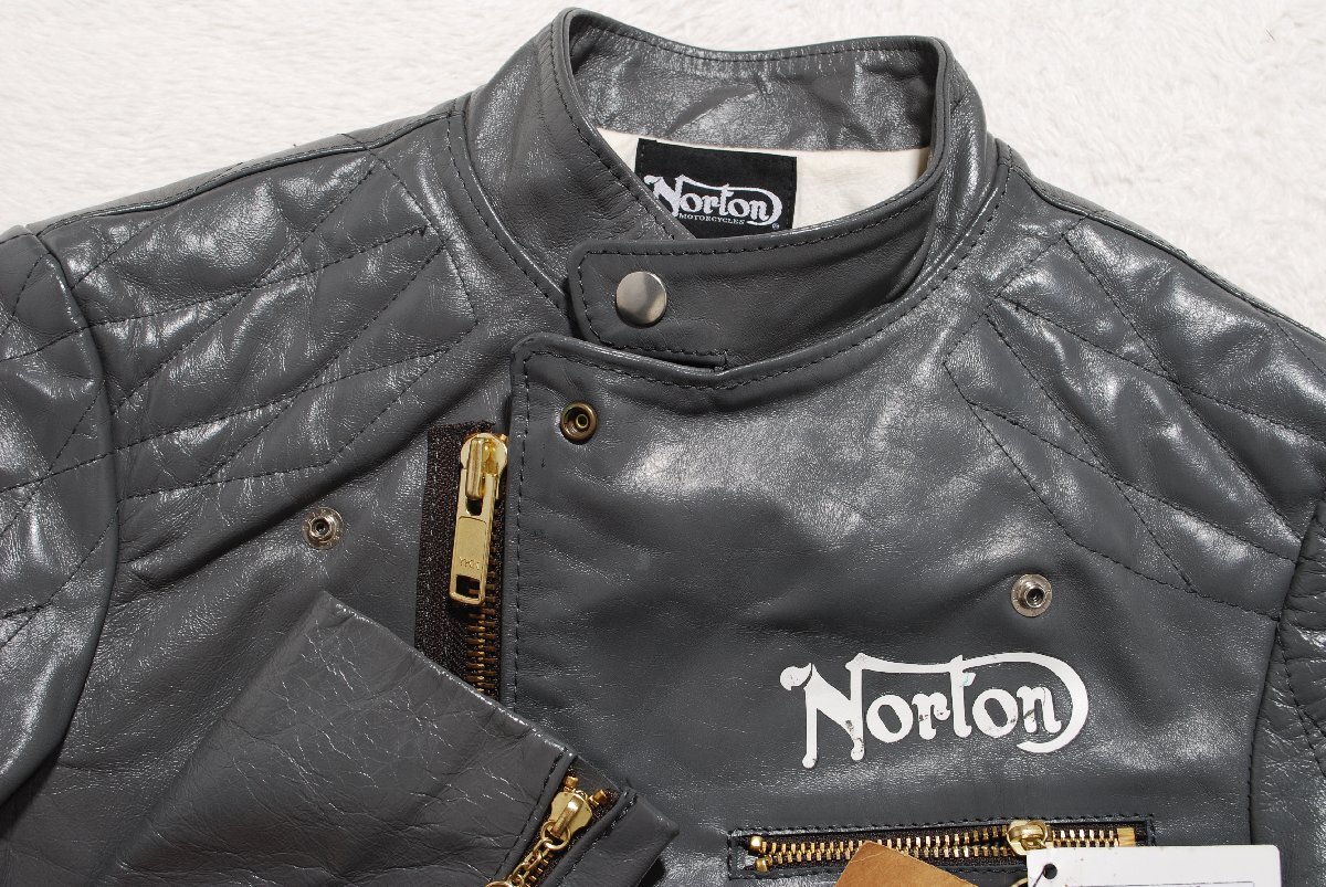 E313■新品定価19.9万(サイズM程度)/汚れあり★\JEANSxNortonノートンレザーライダースジャケットブルゾン