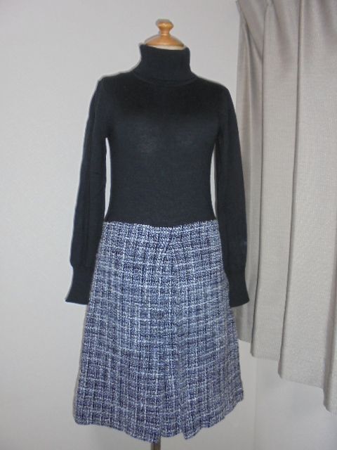 C.A.P上身タートルニットW切替チェックツイード織センタープリーツOP