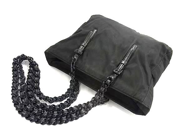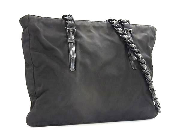 1円 PRADA プラダ テスートナイロン プラスチックチェーン トートバッグ ハンドバッグ 肩掛け レディース ブラック系 FU8381