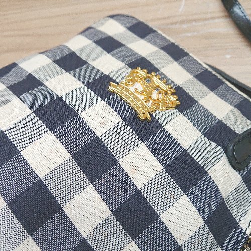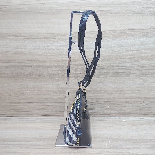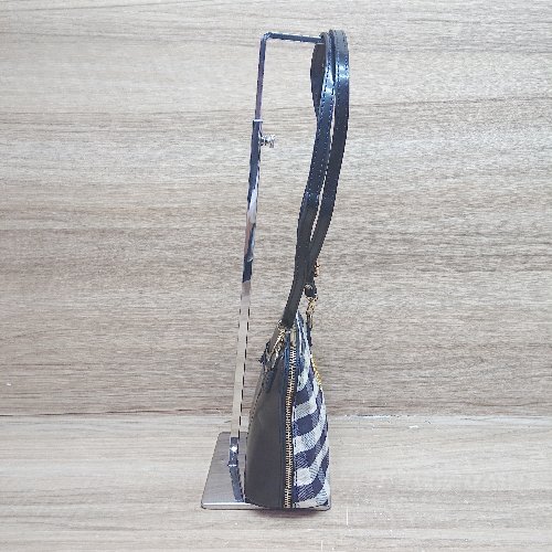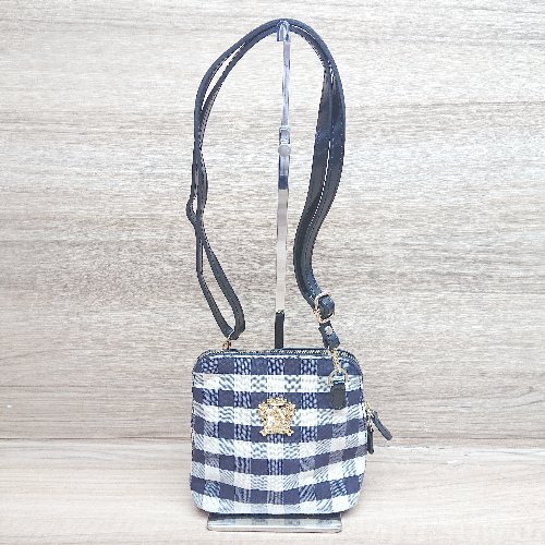 ◇ Pratesi プラテージ ブロックチェック柄 ゴールドの飾りあり ショルダーバッグ ブラック アイボリー レディース E