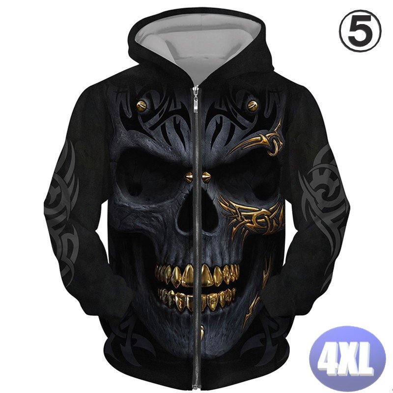 フード付き ドクロパーカー ジップアップ カラー5 4XL トレーナー アウター 防寒 n717