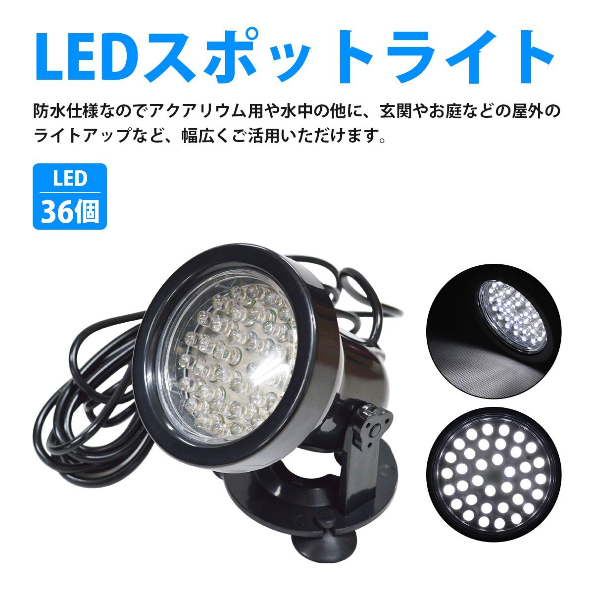 『白/ホワイト 水槽 屋外』スポットライト 照明 36LED アクアリウム サンゴ 熱帯魚 LEDライト 吸盤貼り付け 180度 角度調整