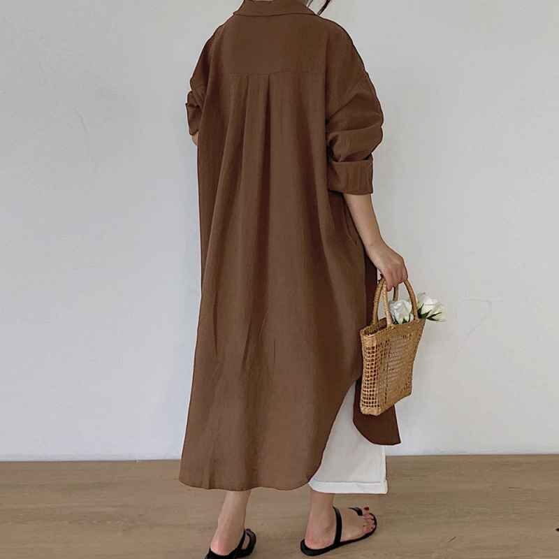シンプルなデザインで大人な着こなし長袖の開襟シャツワンピース