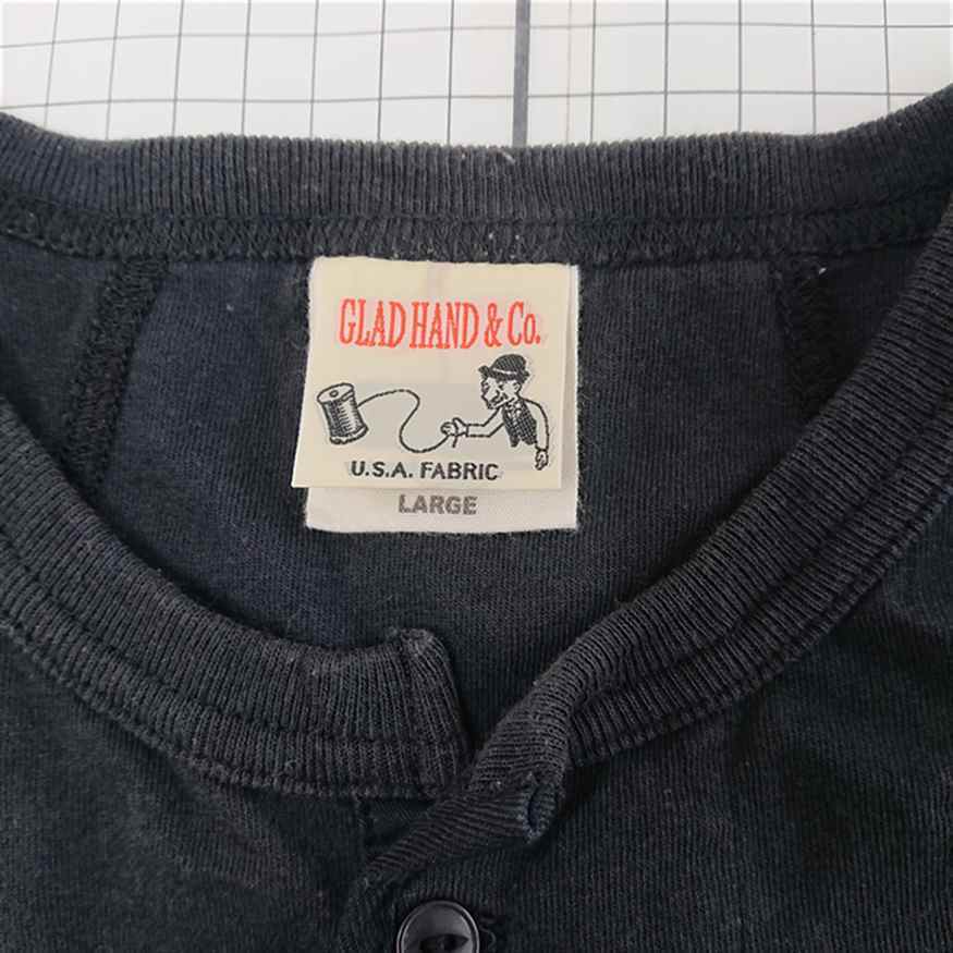 ◇ ⊂ GLADHAND &Co. グラッドハンド ヘンリーネック 半袖 Tシャツ カットソー サイズLARGE ブラック系 メンズ E