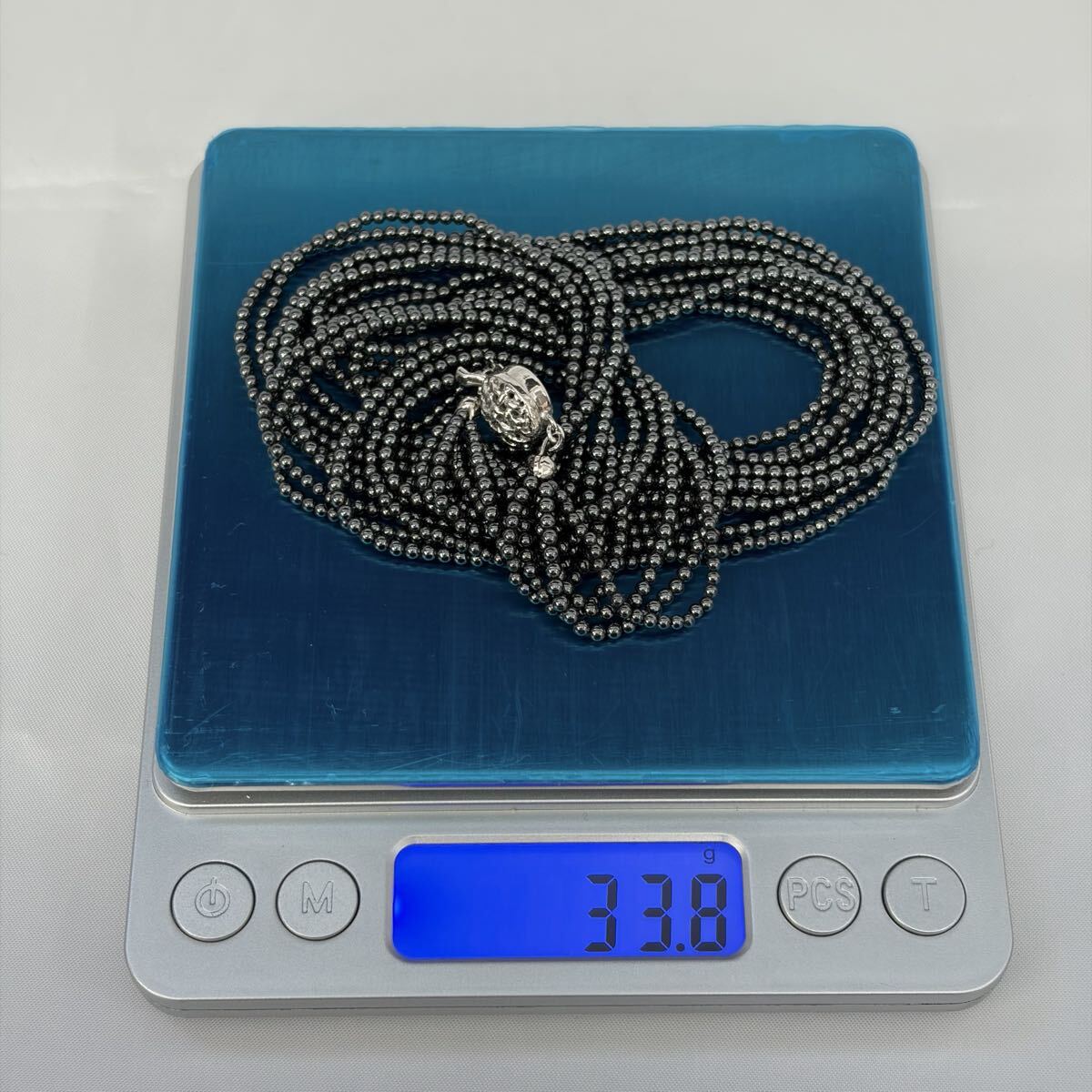 【1126M15】ヘマタイト ビーズ 丸玉 シルバー silver刻印 33.8g 31cm アクセサリー レディース
