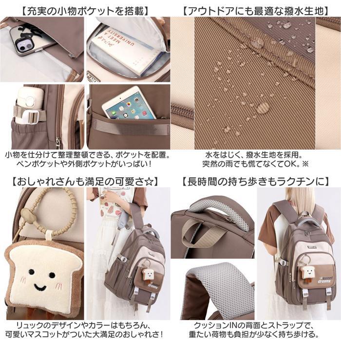 | 商品説明 | ・・【タブレット、教材や文具を収納◎】 ・通学から休日レジャー、旅行まで大活躍☆「キッズ リュックサック 大容量」が登場。 ・【抜群の収納力が自慢!】 ・ざっくり入る、大きめのメインルーム。水筒やお弁当、教科書やポーチなどをまるっと収納。 ・【クッションINポケットを搭載】 ・メイン収納には、タブレットなどの電子機器を持ち歩いても安心の専用ポケットつき! ・【アウトドアにも最適な撥水生地】 ・水をはじく、撥水生地を採用。突然の雨でも慌てなくてOK。※完全防水ではありません。 ・【充実の小物ポケットを搭載】 ・小物を仕分けて整理整頓できる、ポケットを配置。ペンポケットや外側ポケットがいっぱい! ・【おしゃれさんも満足の可愛さ☆】 ・リュックのデザインやカラーはもちろん、可愛いマスコットがついた大満足のおしゃれさ! ・【長時間の持ち歩きもラクチンに】 ・クッションINの背面とストラップで、重たい荷物も負担が少なく持ち歩ける。 ・【キャリーオンベルトつき】 ・キャリケースにつけて持ち運べる、ベルトを搭載。家族とのお出かけにもぴったり! ・【男の子も女の子もOK☆】 ・幅広いカラーバリエーションをご用意。性別関係なく使えるのが嬉しいポイント。 ・【ポケット仕様】 ・メイン:PCポケット×1 ・背面:ファスナーポケット×1 ・サイド:オープンポケット×2 ・フロント収納:オープンポケット×3、ペンポケット×2 ・前面:ファスナーポケット×1、フラップポケット×1 |