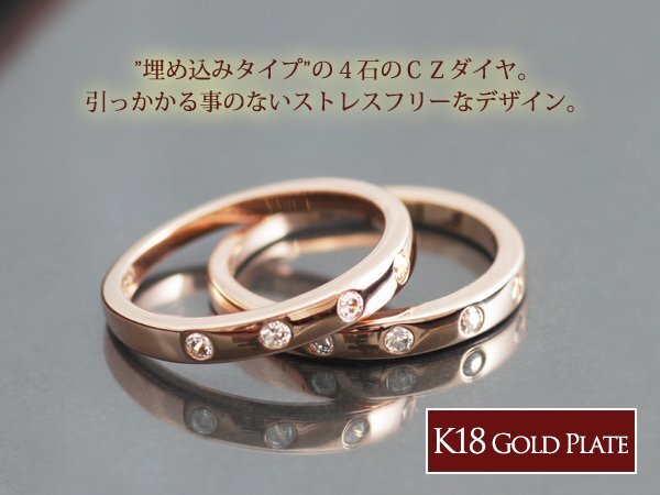 15号 / 新品 指輪 K18GP シンプル 平打ちリング フラット 18金 ピンクゴールド レディース ダイヤ CZ 人差し指 中指 薬指 プレゼント 女性