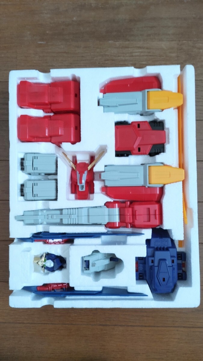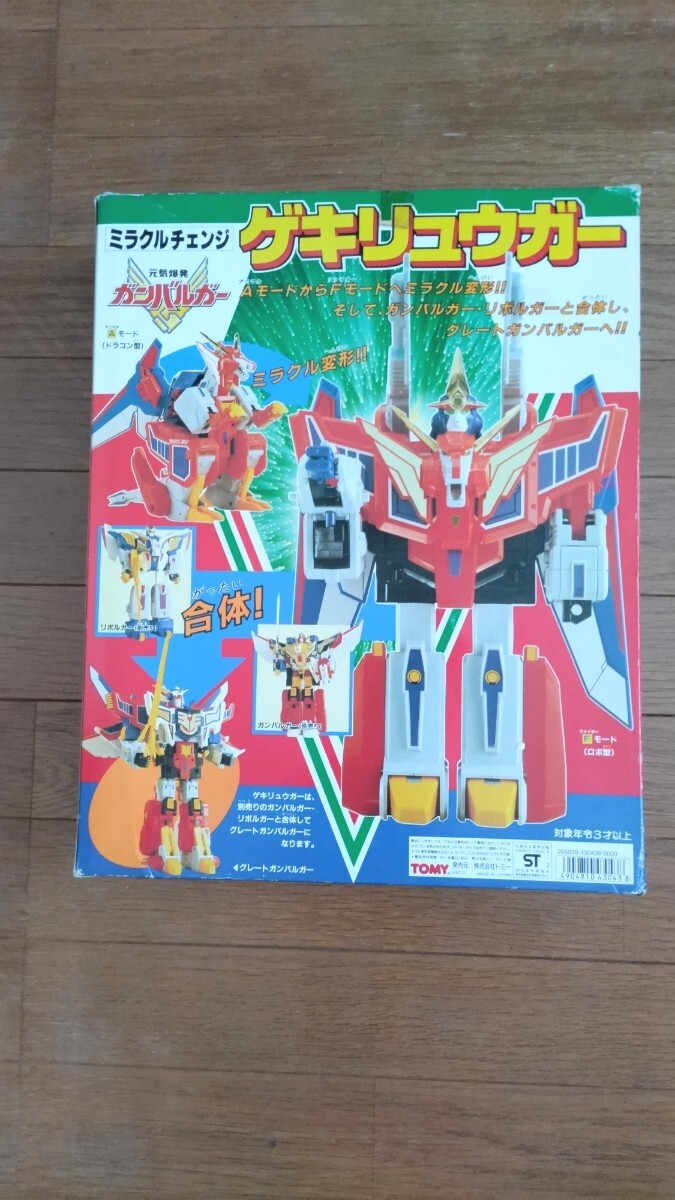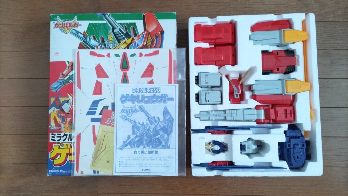 当時購入後内容確認のため一度だけ開封し、その後は長期間自宅で保管していました。出品に伴い久々に開封して撮影しました。ガンバルガー(出品中)、リボルガー(出品中)と超ミラクル合体してグレートガンバルガーになります。