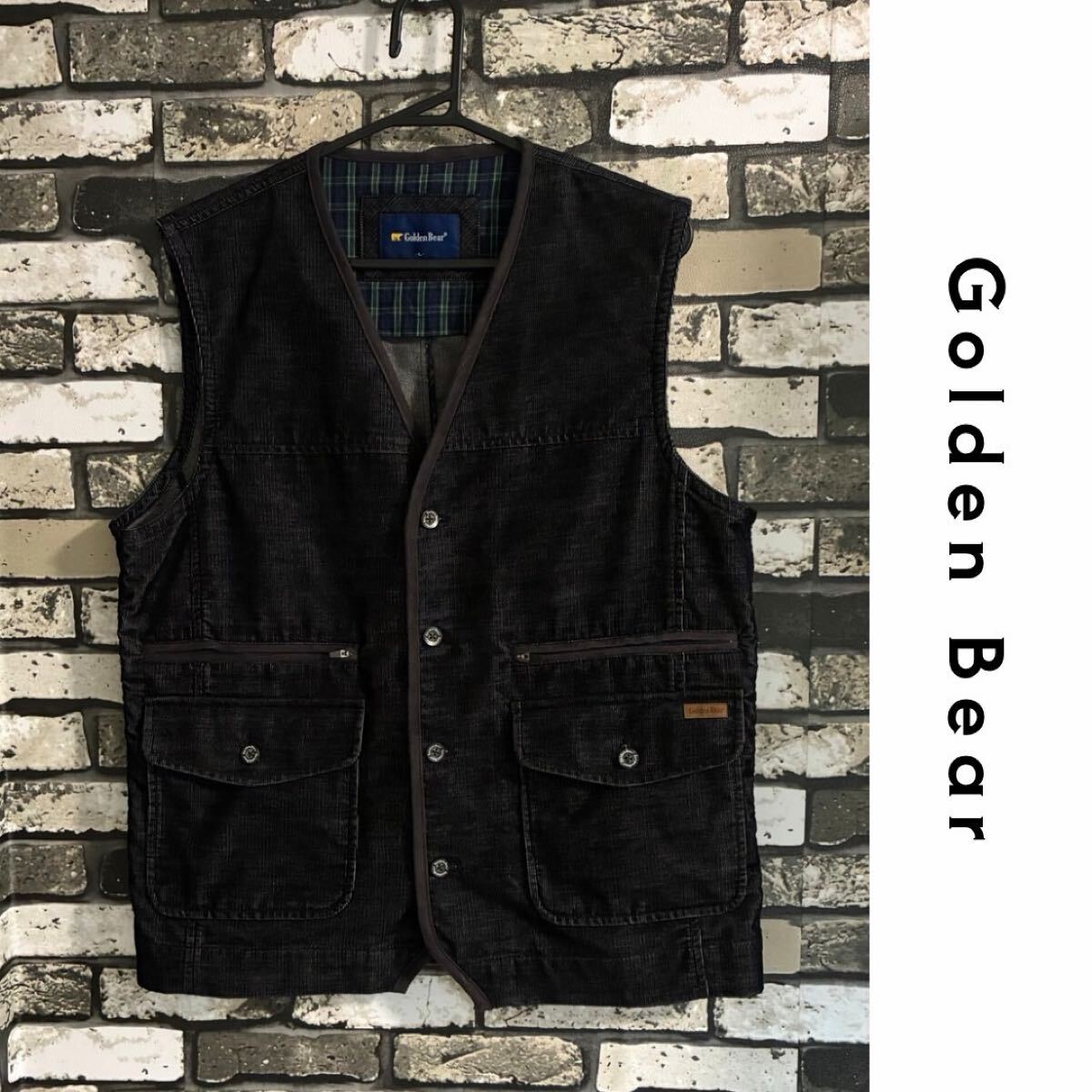 【良品】Golden Bear ゴールデンベア コーデュロイ ベスト 黒 メンズ ゴルフ