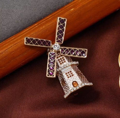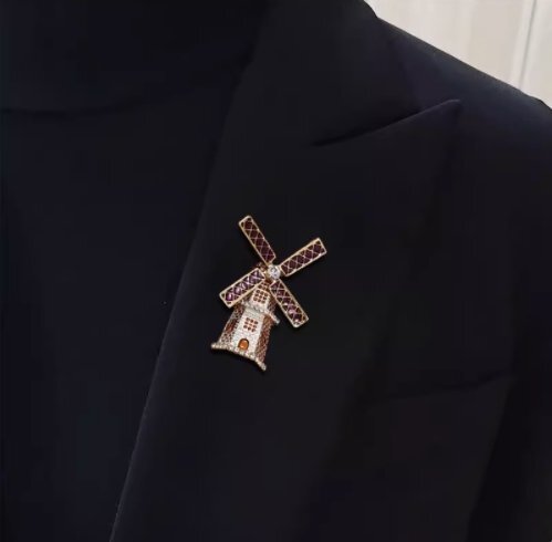 新型ブラウン風車灯台ブローチおしゃれピンブレザーニット杉アクセサリー