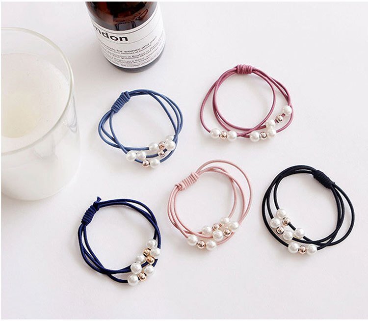 かわいい真珠風三連ヘアゴムです。