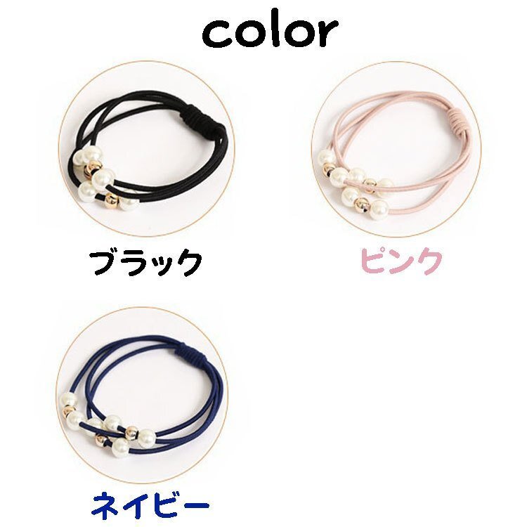 ◆おしゃれ ヘアゴム 3連 髪留め プレスレット ポイント消化 ビーズ 真珠 パール ヘアアクセサリー ネイビー ブラック ピンク3色選択可 真珠風ヘアゴム HARUSET1/ピンク