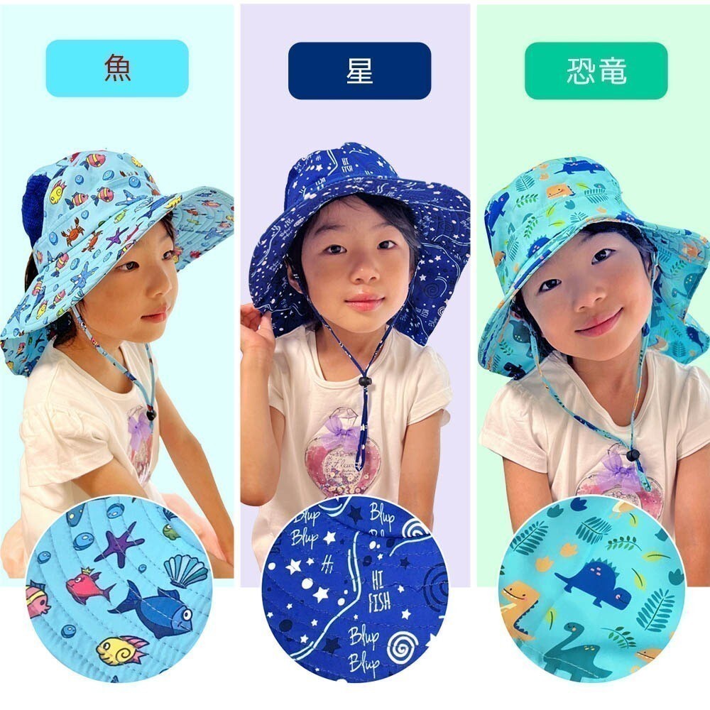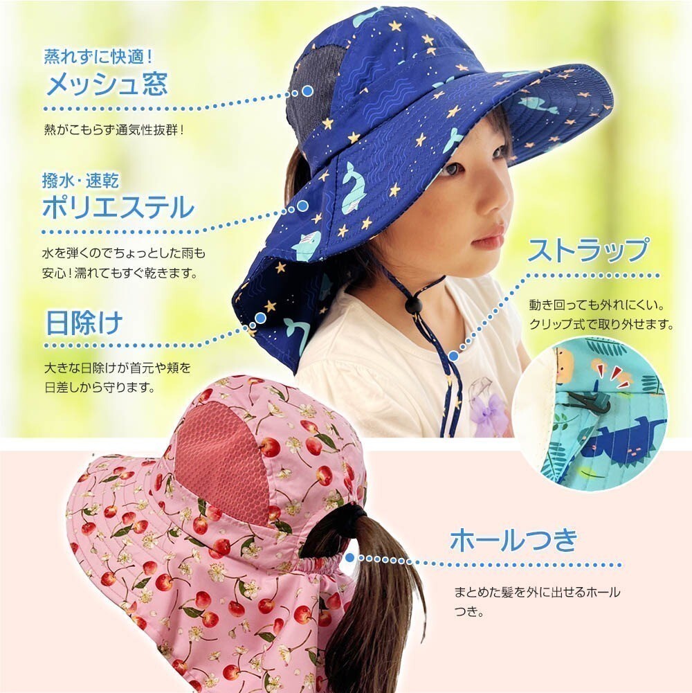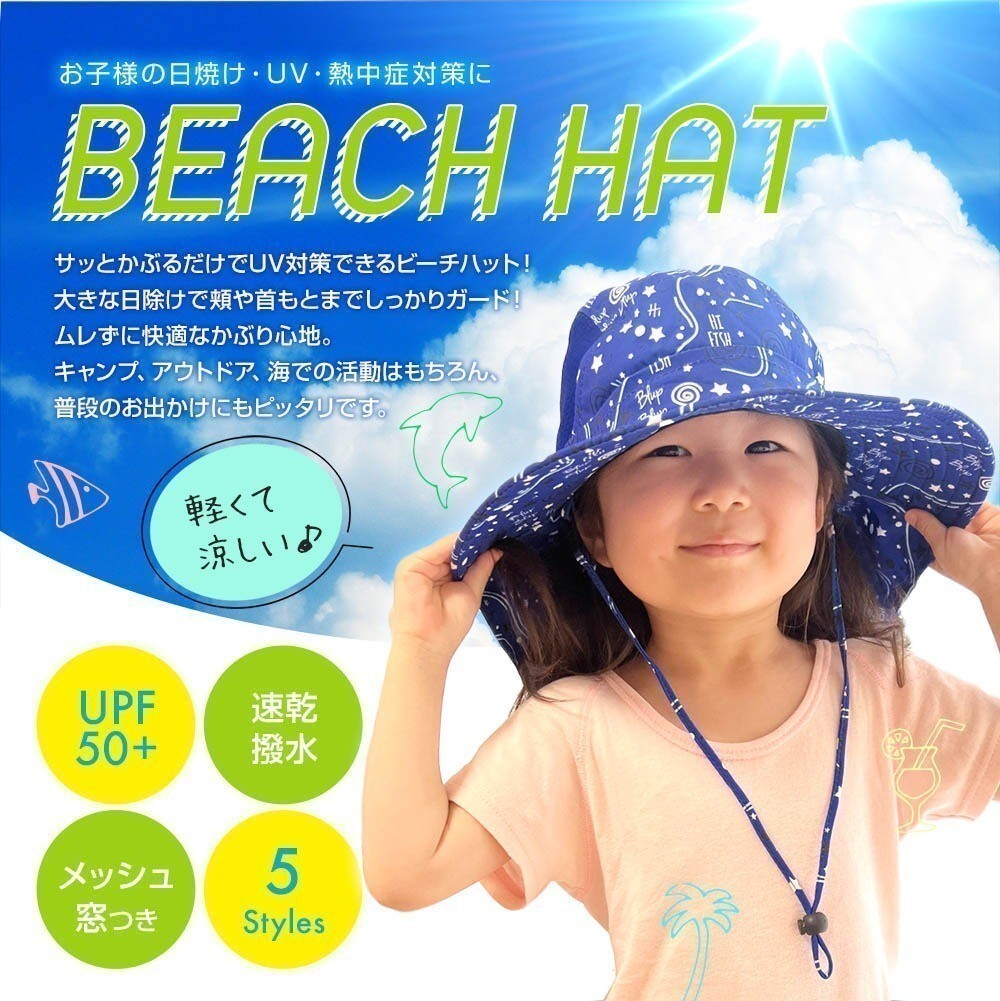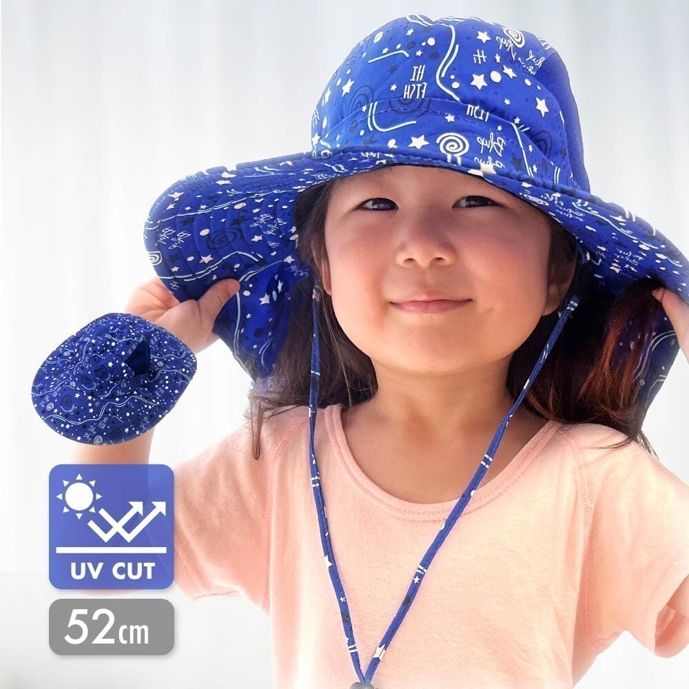 日よけ帽子 ビーチハット 子供用 帽子 日よけ 夏 サマー 子供 子ども キッズ ハット 熱中症対策 54-56cm ブルー 青 星柄