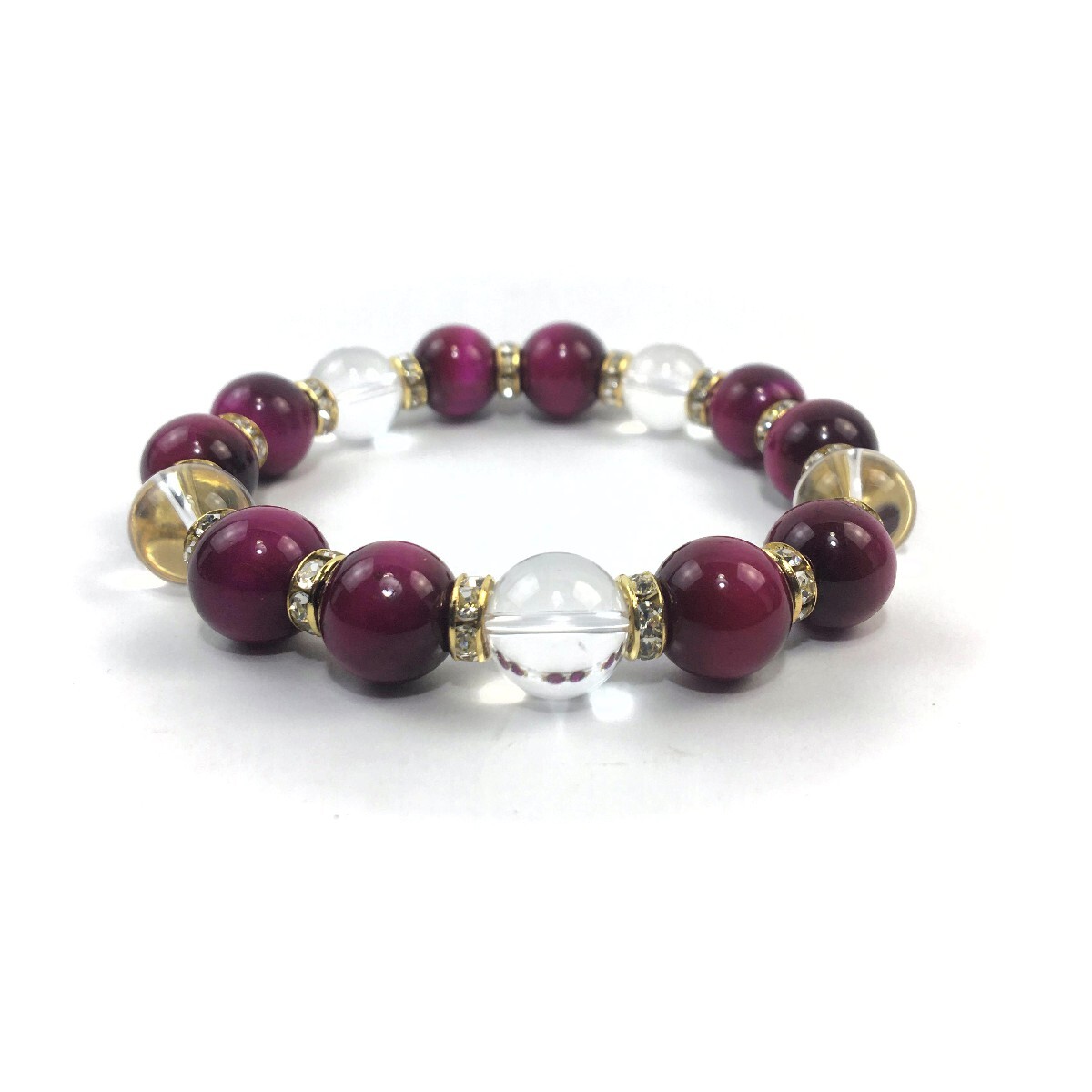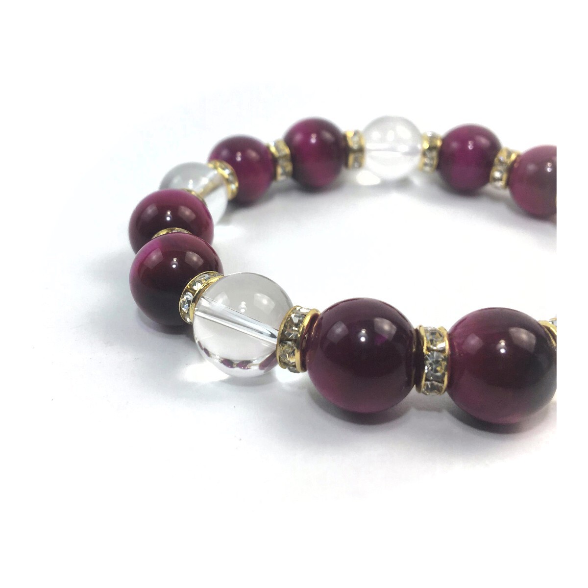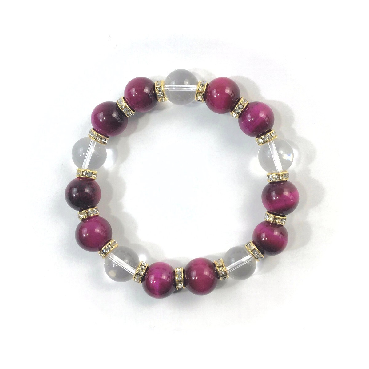 ピンクタイガーアイ&水晶 パワーストーン ブレスレット 天然石ブレス (ゴールド) 12mm 幸運 開運 メンズ 男性♪