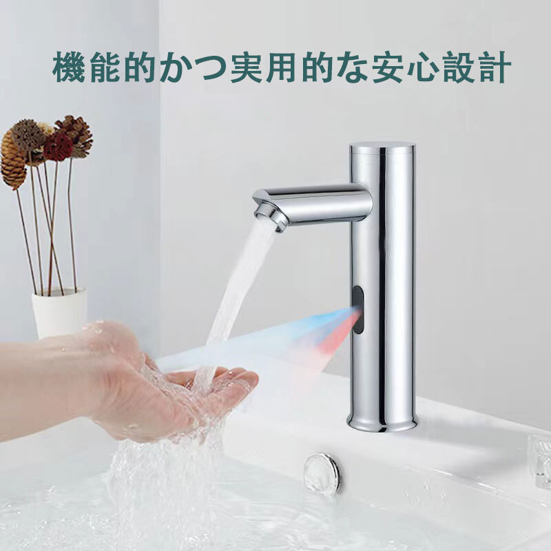 【自動センサー水栓】手が検知範囲内に入りセンサーが作動すると自動的に水が出ます。手を離せば自動で水が止まります。非接触により衛生的で、無駄な水も流さず優れた節水効果もあります。病院、学校、レストラン、公衆トイレなど公共の場でもご利用いただけます。