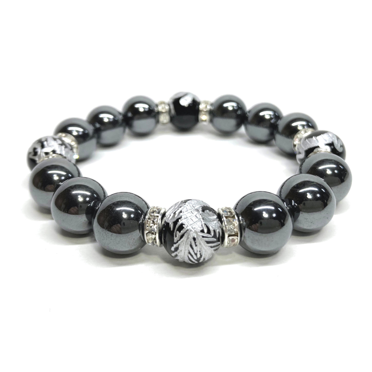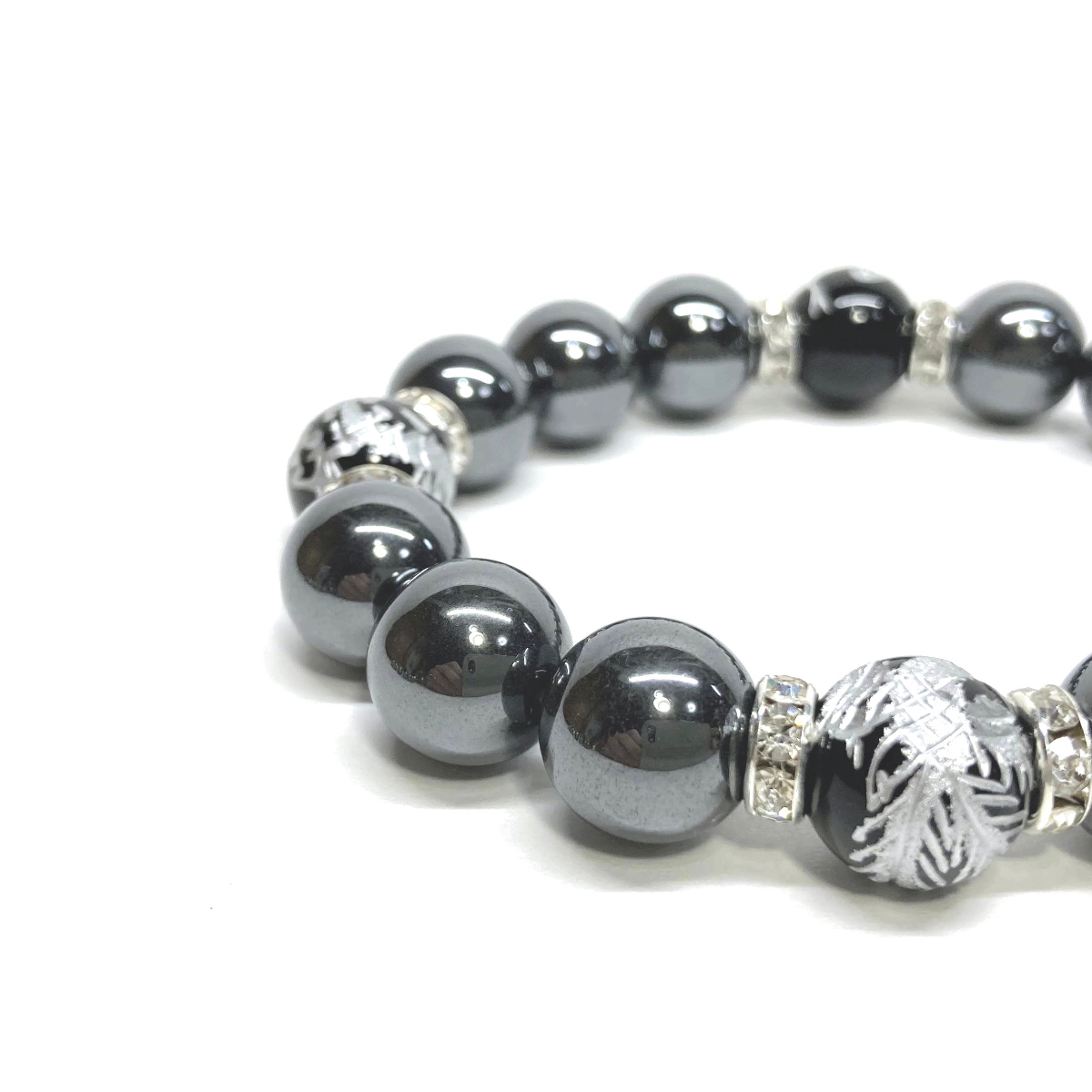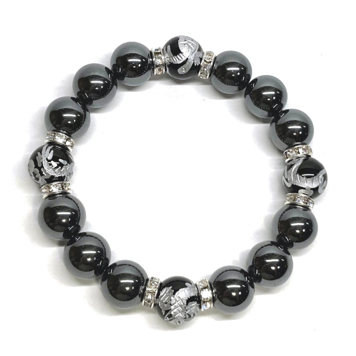 こちらは、四神獣銀彫オニキとヘマタイトを組み合わせたパワーストーンブレスレットです。四神獣は、中国の伝説で4つの方向(東西南北)を守護する神聖な神。四神獣、厄災から身を守り、多くの運気を呼び込むと言われております。石大きさは程よくインパクトのある12mm玉で内周 約17cmです。 数に限りがございますので気になる方はお早めにどうぞ。