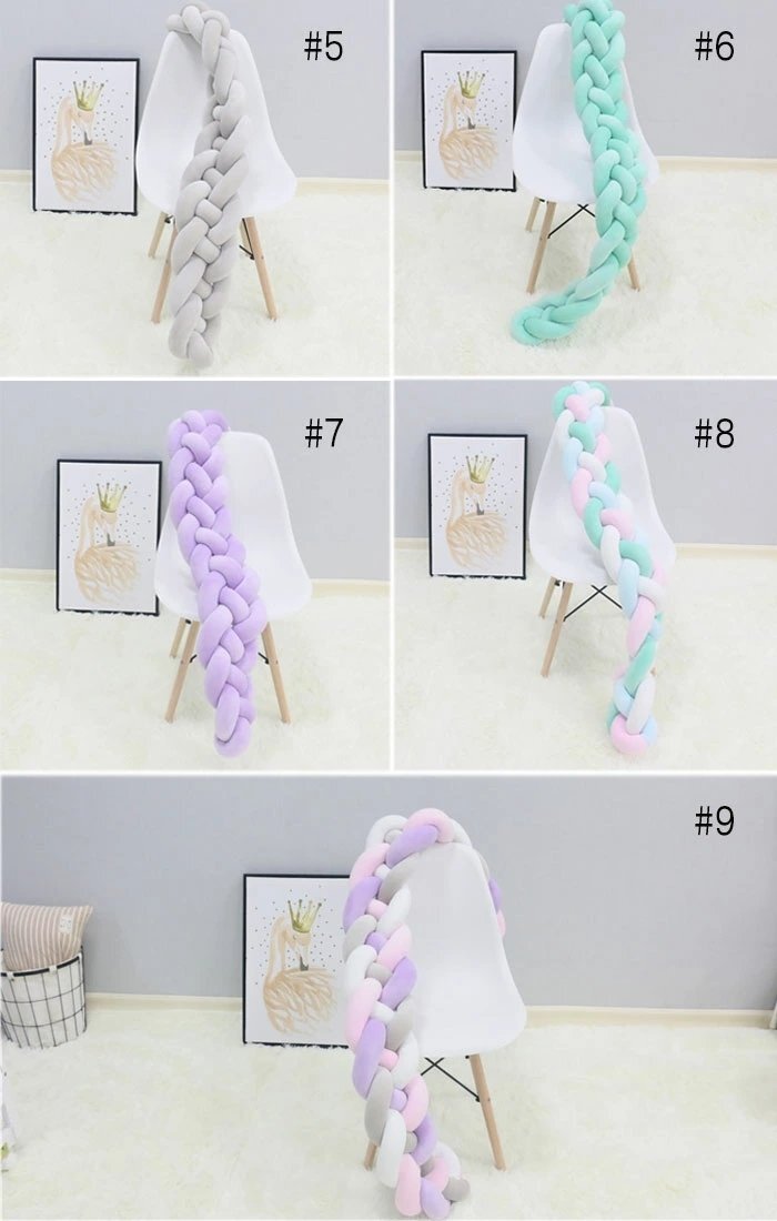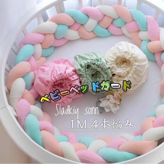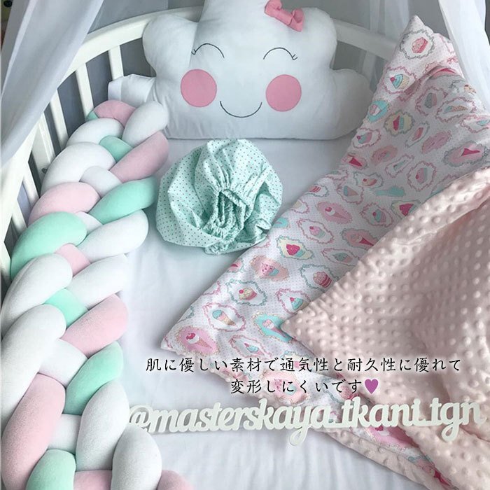 ベビーベッドガード 寝返り防止クッション 1M 4本編み ノットクッション ベビー ベッドガード クッション 赤ちゃん 結び目 ☆多色選択/1点