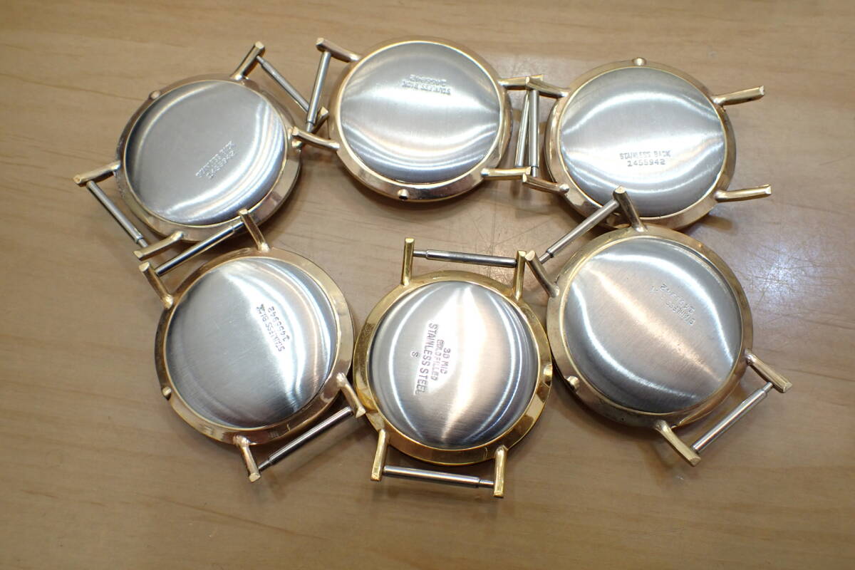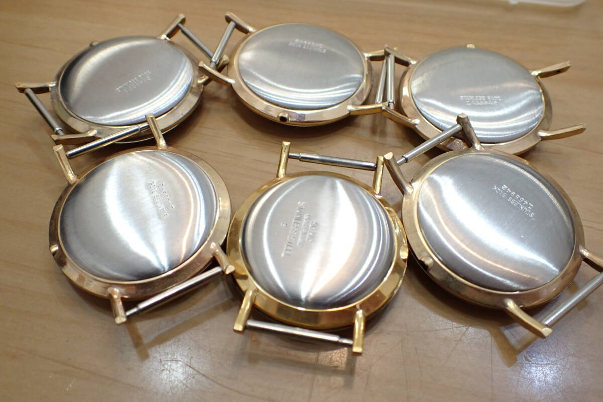 デッドストック スイス/セイコー/シチズン等に ケース/ガラス/裏蓋等 6個セットです。 デッドストック品です。 ケース、風防、裏蓋などのセットです。 すべて綺麗です。 写真でご確認ください。 ジャンクでお願いします。 ケース径約36mm !オークション終了後、24時間以内に「お取引を始める」ボタンをクリックして、必ず取引をスタートして下さい。 取引のスタートが無ければ、削除させていただきます。 必ず厳守してください! 「新規ID」「直近で悪い評価が多い方」のトラブル(イタズラなど)が非常に多いです。 当方が、お取引に支障があると判断したID(特に新規ID)は削除します。 ●ジャンク品と記載の物の商品到着時の動作保証はありません。 ●付属品等は、写真に写っているものですべてです。 | ||||