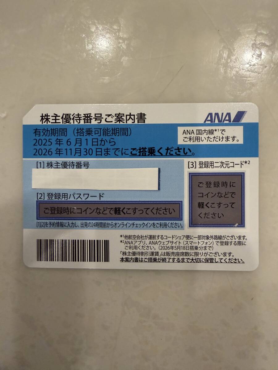 送料無料♪【ANA】全日空 株主優待券 6枚セット 2026.11.30まで有効