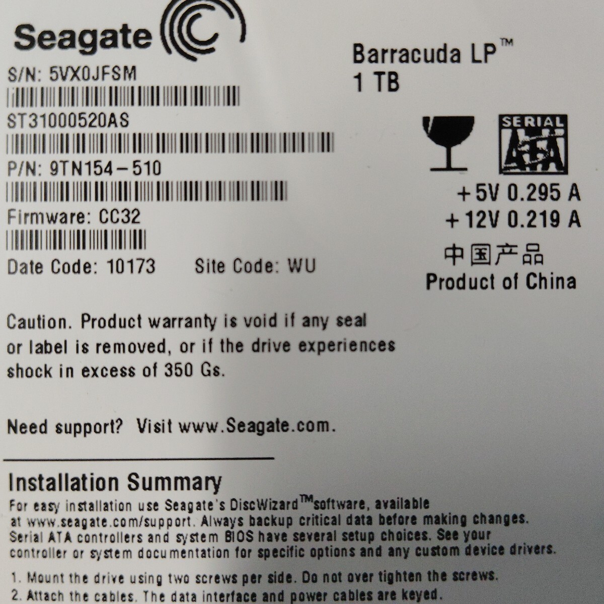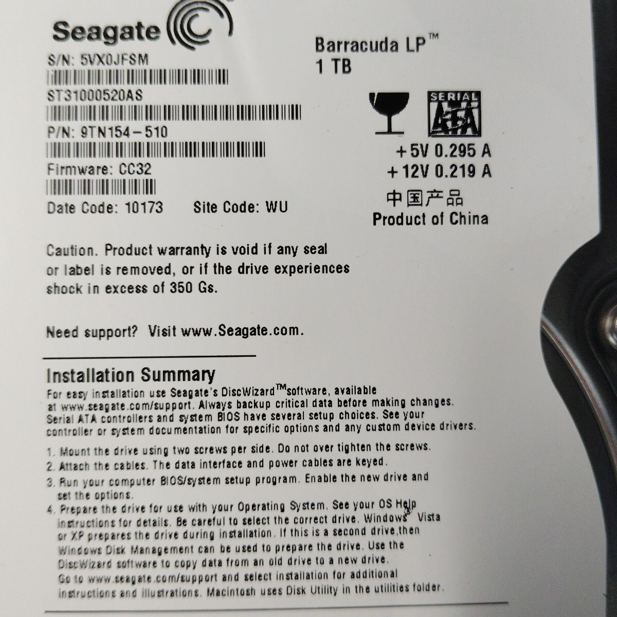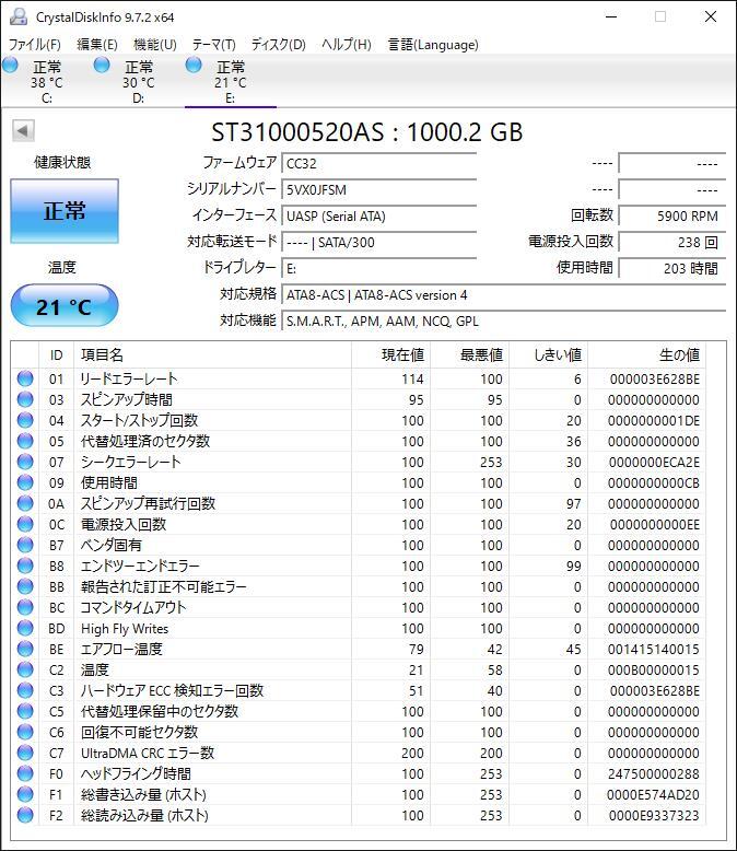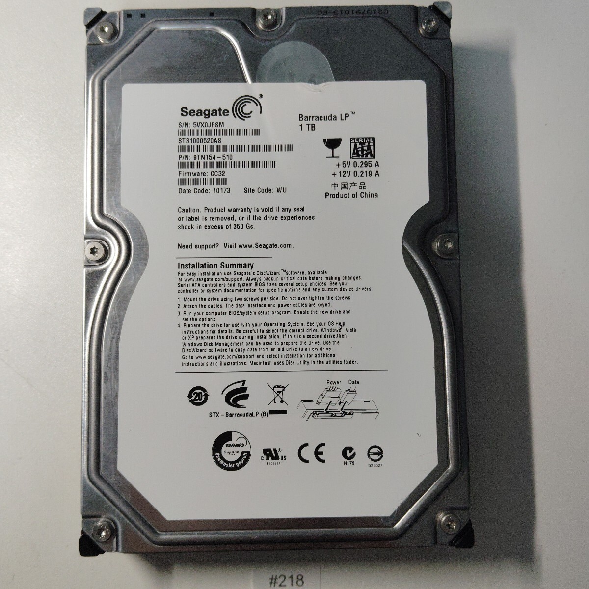 HDD 1TB 使用時間203H 3.5インチハードディスク / Crystal DiskInfo 正常 / #218 / Seagate / ST31000520AS