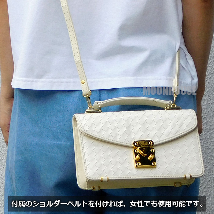 送料無料 訳あり 特価 イントレチャート 編み込み セカンドバッグ メンズ オラオラ系 チョイ悪系 クラッチバッグ ハンドバッグ ホワイト☆