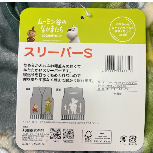 即決新品 子供 スイーパー ムーミン谷のなかまたち グレー S 50cm×35cm 3才から5才ぐらい 送料無料 あったか