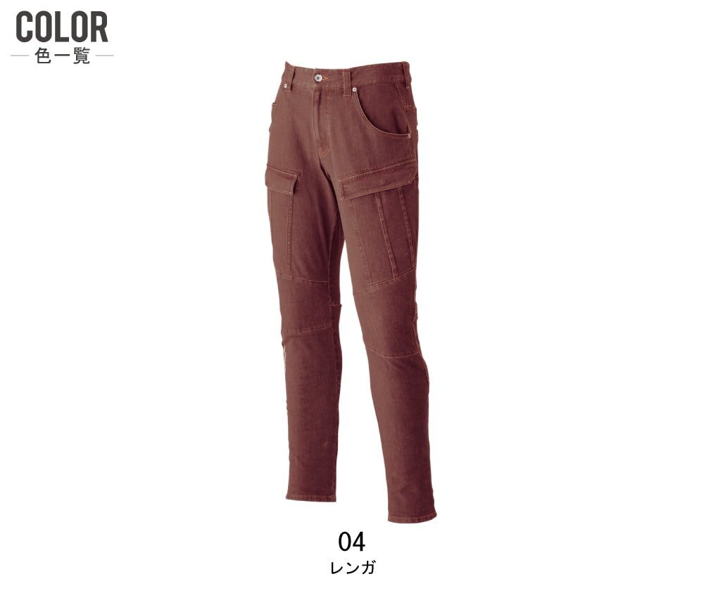 特長:ダブルストレッチ/コインポケット/ホック付カーゴポケット/膝ダーツ