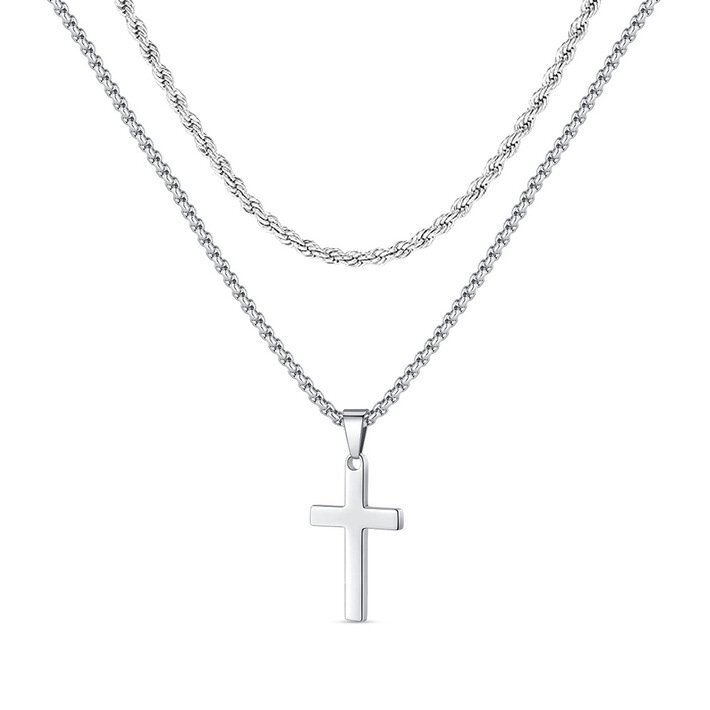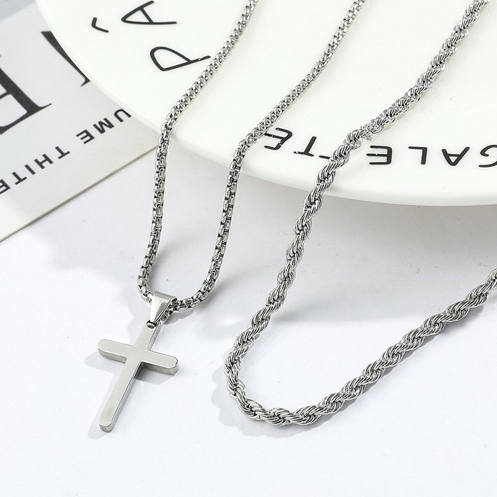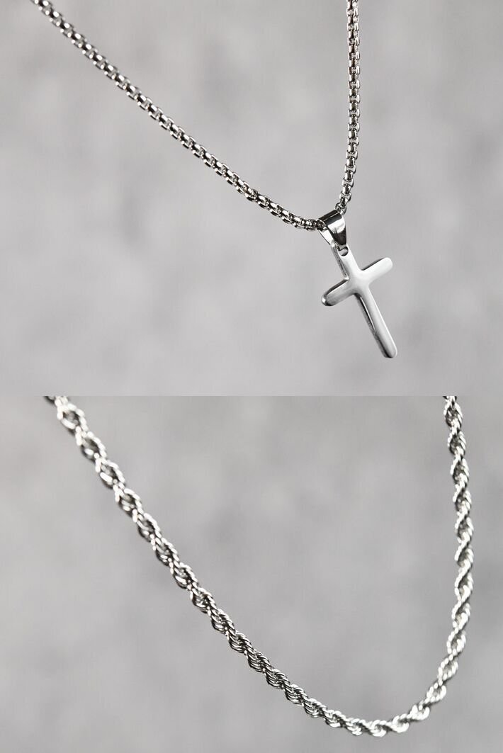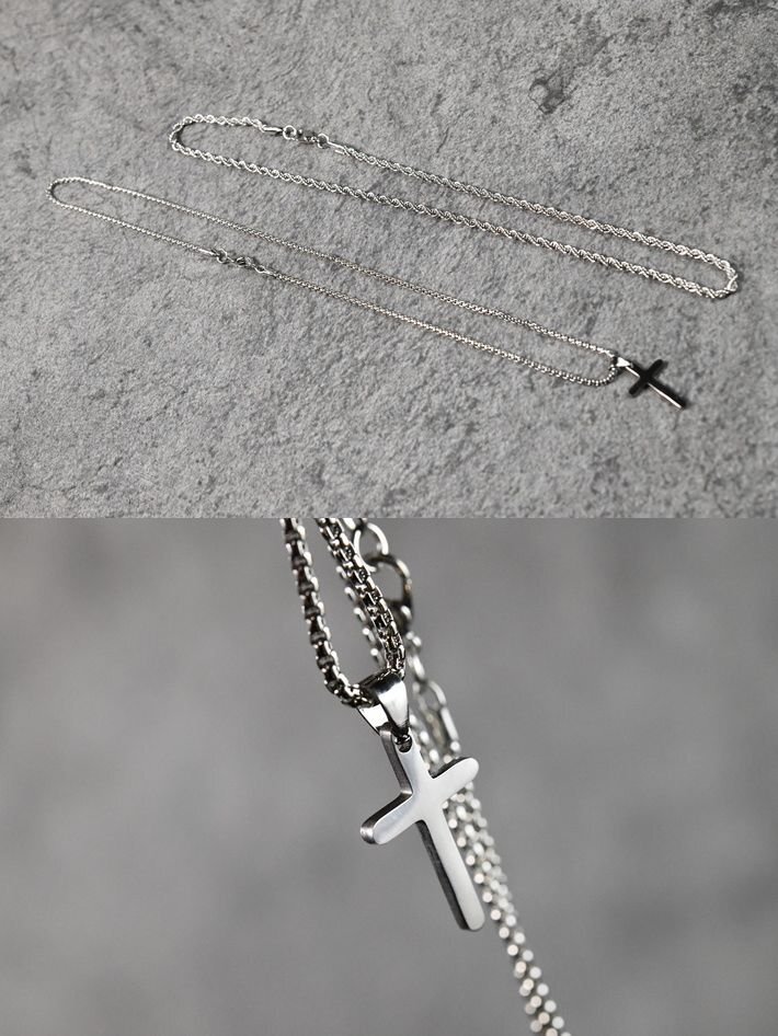 シンプルながら存在感のあるクロスモチーフをあしらったメンズネックレス。