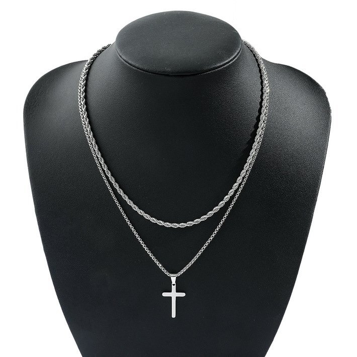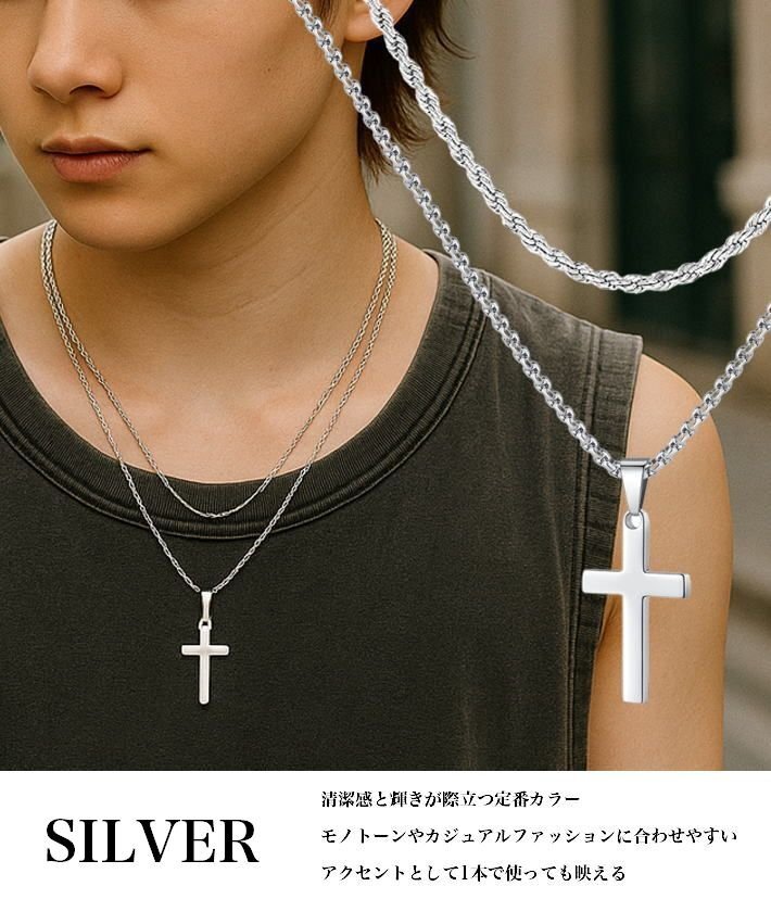 クロス ネックレス メンズ レディース ダブルチェーン仕様 十字架 2連 アクセサリー シンプル おしゃれ 7986670 シルバー 新品