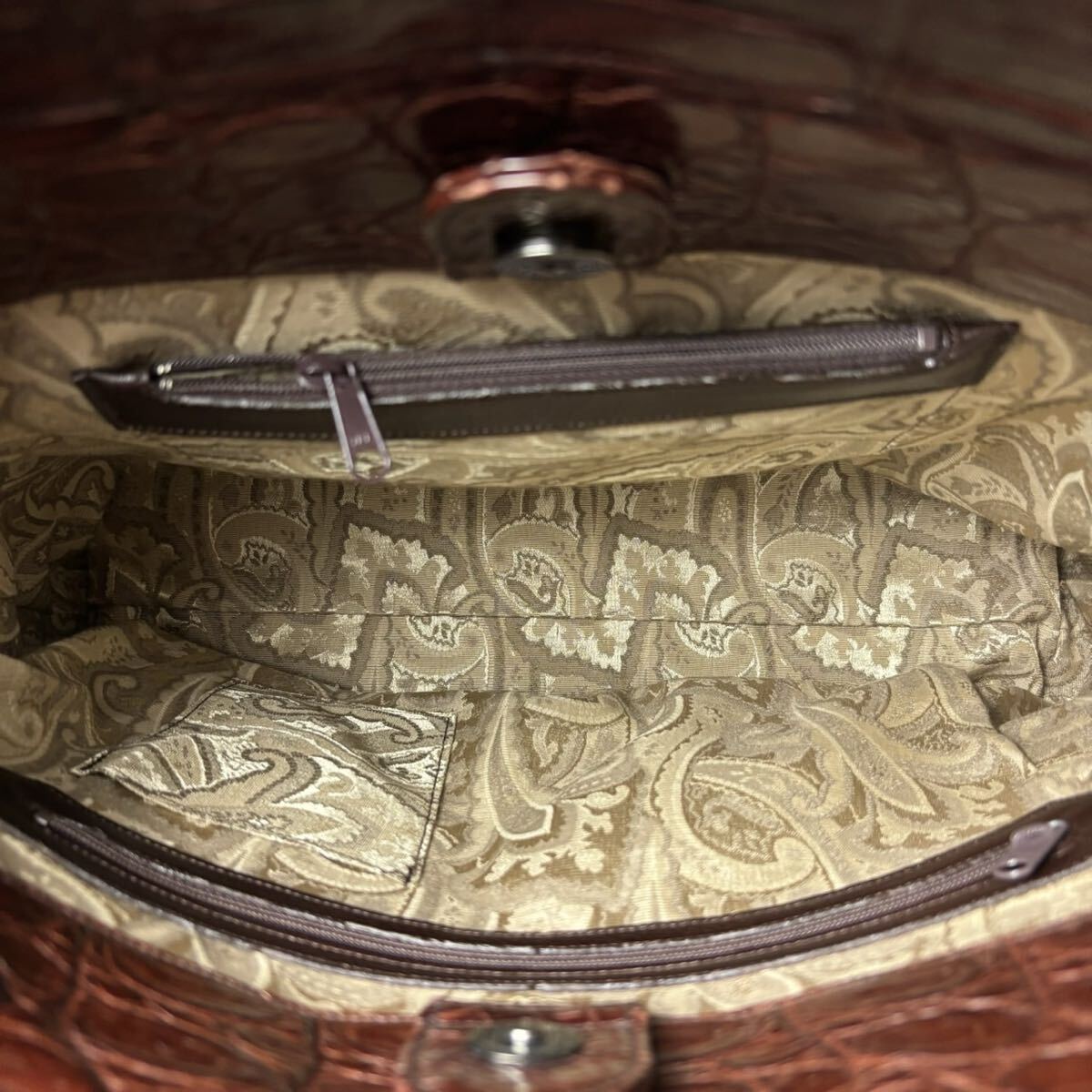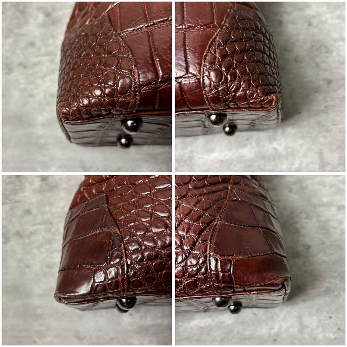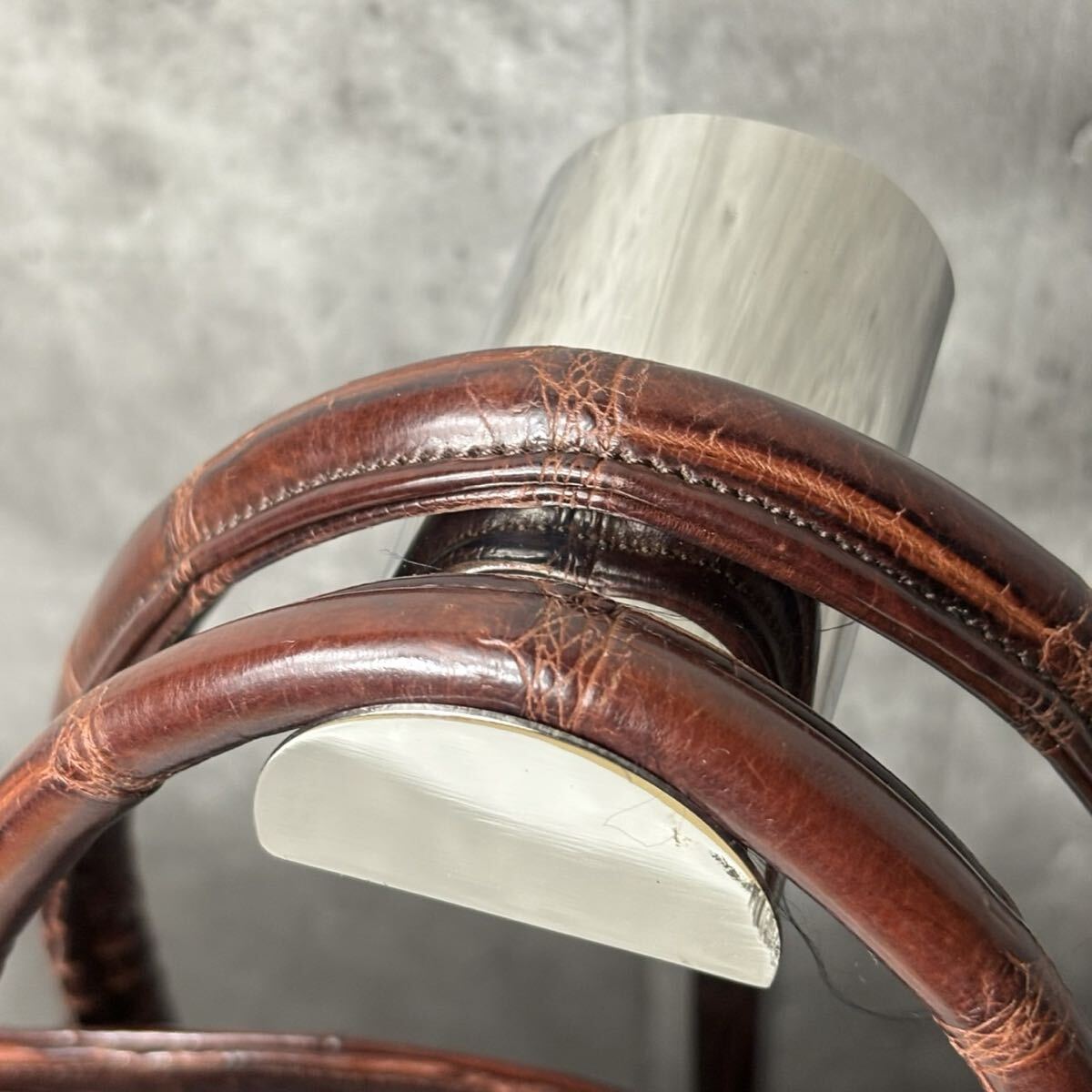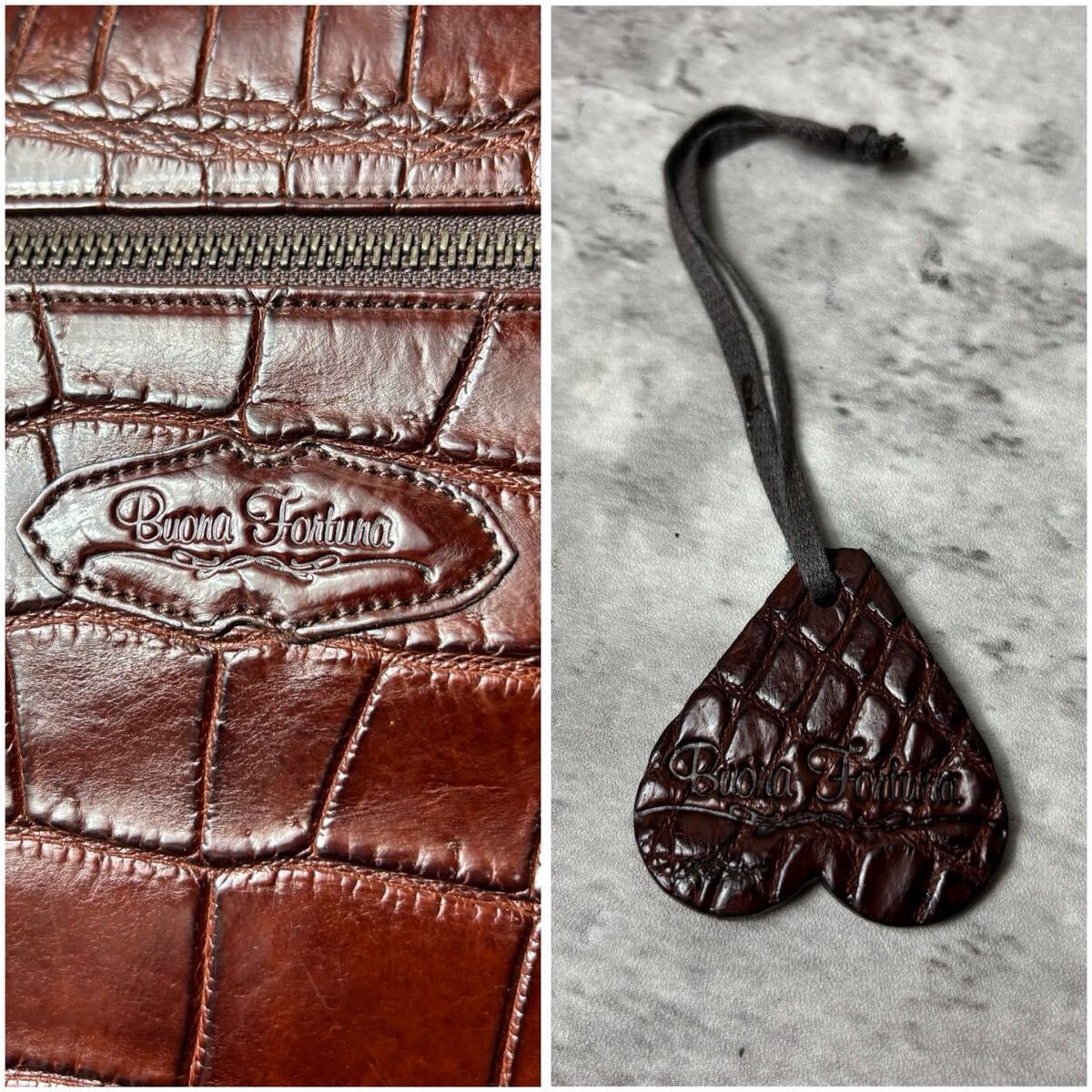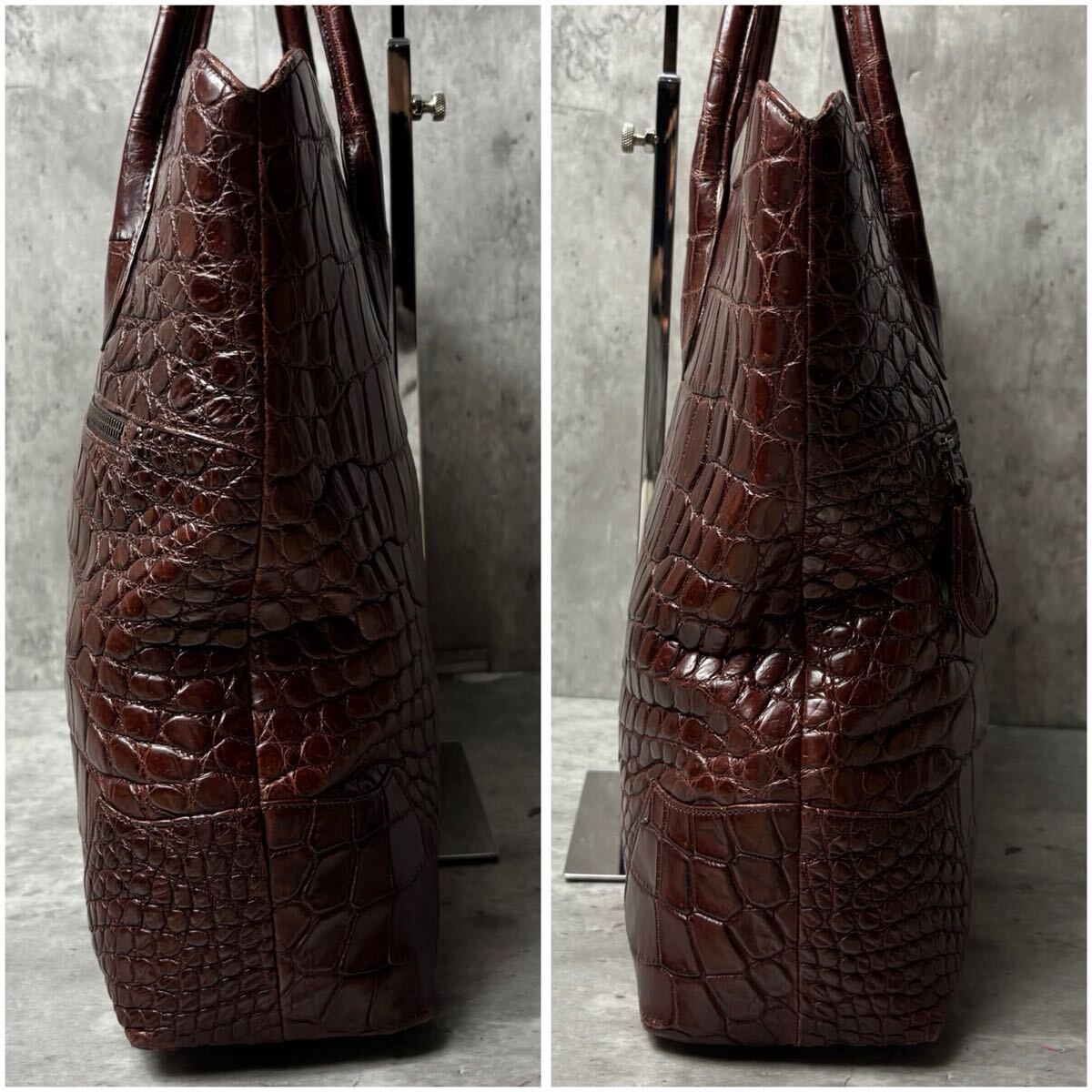 36cm×32cm×9.5cmの迫力ある特大個体を贅沢に使用した、Buona Fortuna のクロコダイルトートバッグです。センター取りの整った斑模様は一点物級の存在感があり、手にした瞬間から“自分だけの特別な逸品を手に入れた”という満足感が広がります。落ち着いたマットクロコの質感はビジネスにも普段使いにも自然に馴染み、市場でもこのサイズ・状態の個体は極めて希少。肩掛け可能で実用性も高く、長く愛せる一品です。
