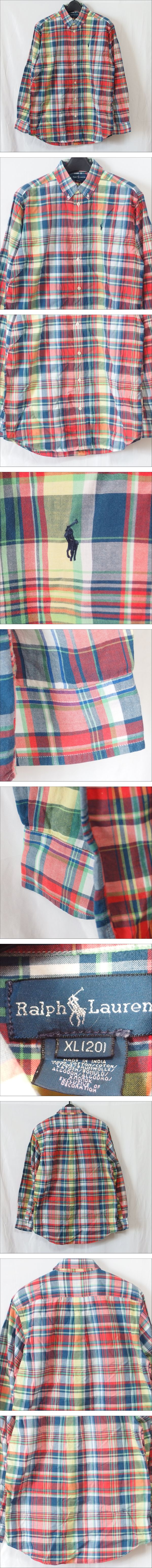 POLO RALPH LAUREN◆ラルフローレン チェック柄 ボタンダウン 長袖シャツ(赤系)サイズXL(20)◆USED R | |||